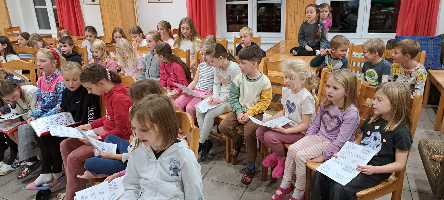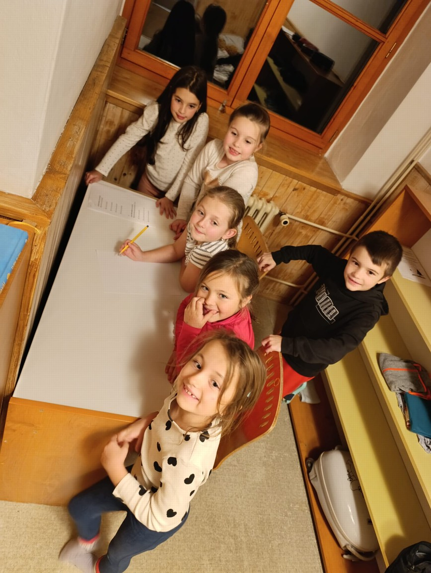 Někteří mravenečci už spí, ale někteří ještě trošku řádí. Už jsme stihli první zkoušku a těšíme se na zítřek.