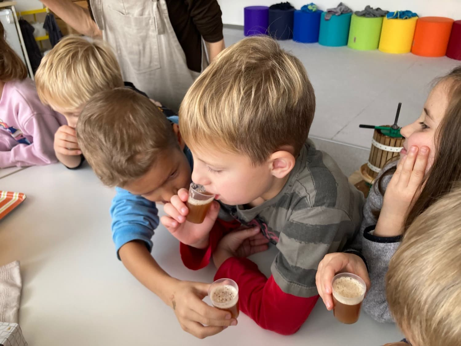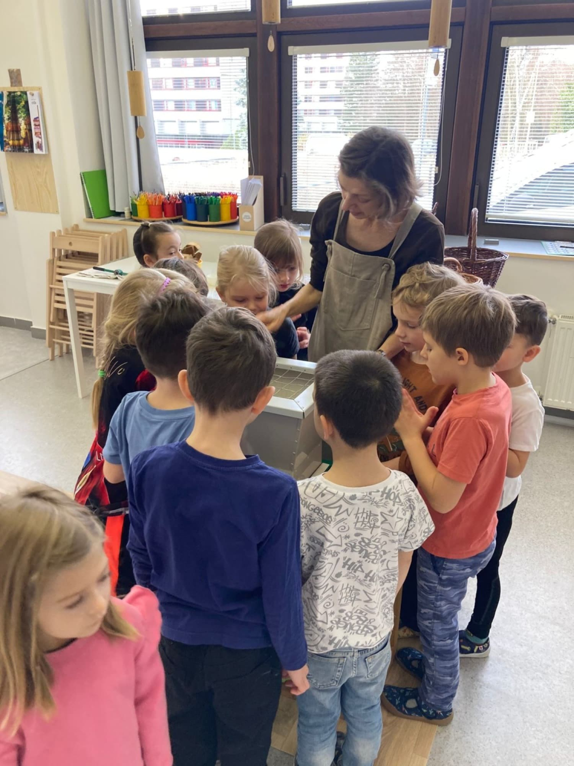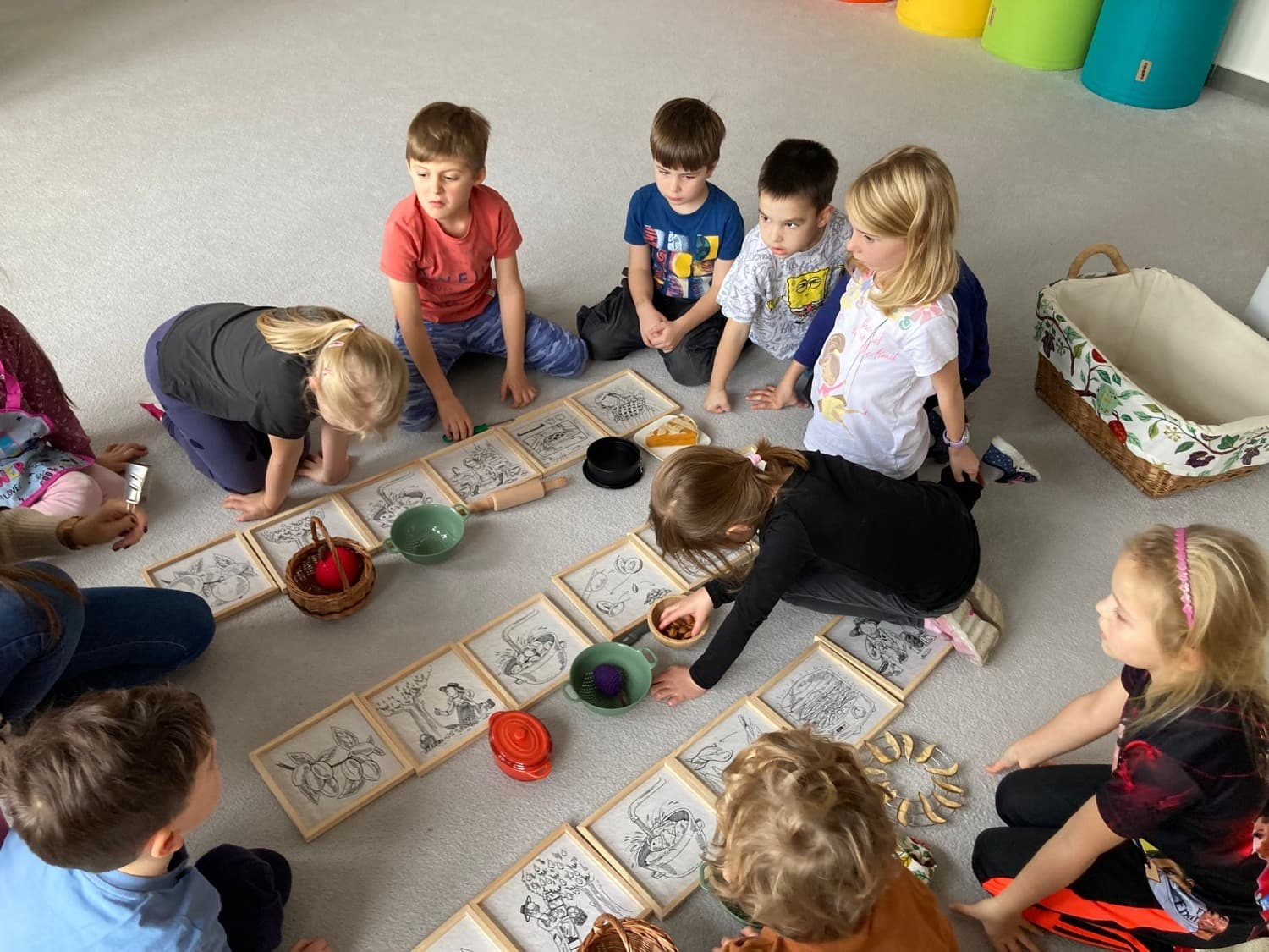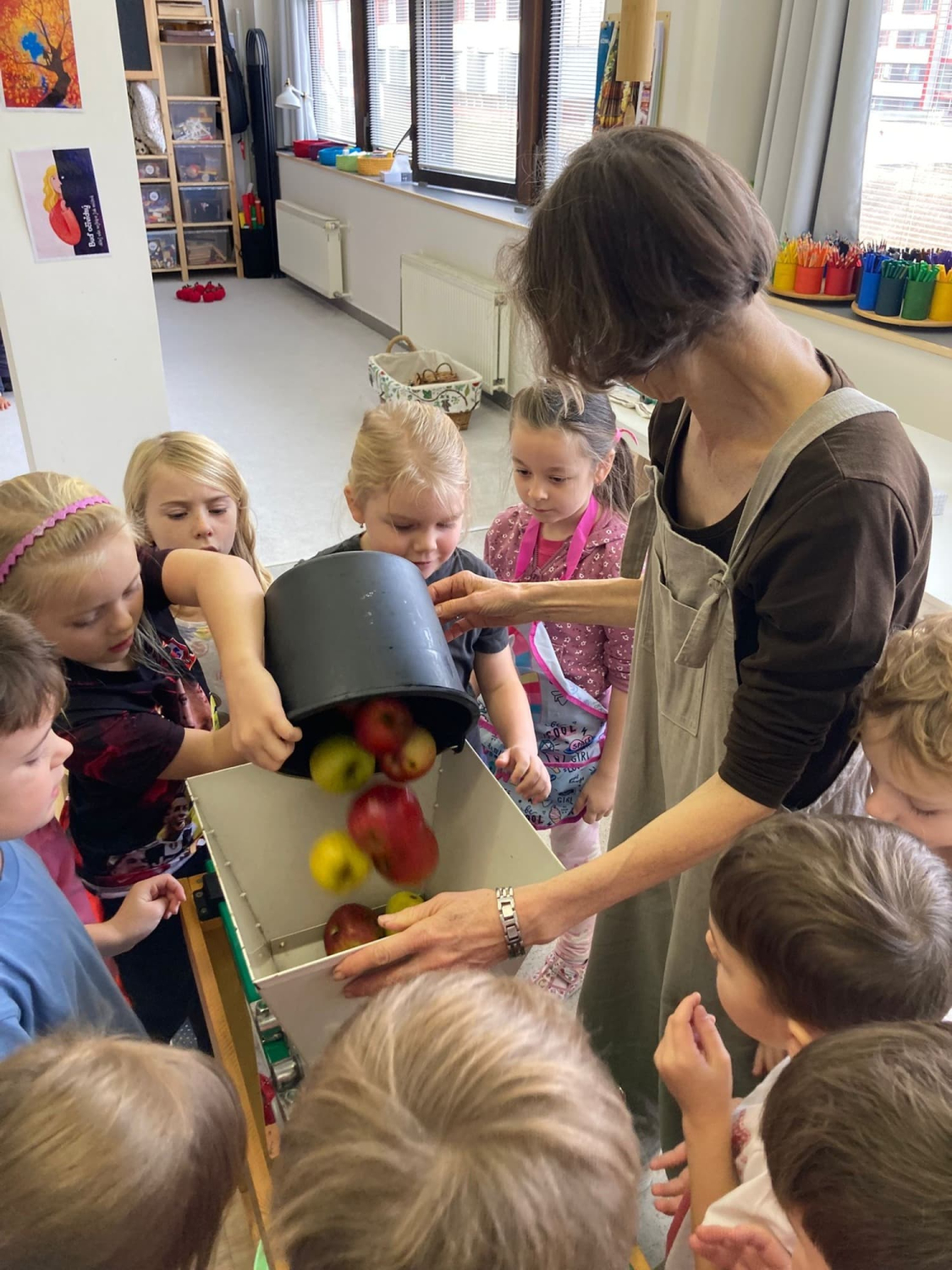 První návštěva v Motyčkovic klice byla úspěšná. Přivítali jsme se, seznámili jsme se s prostorem, rozhýbali jsme se a začali jsme si povídat o podzimu a ovoci. Zjistili jsme, co vše se může dobrého uvařit, upéct a vytvořit z hrušek, švestek a jablek. Poté jsme se vrhli na hlavní úkol dne - tvorbu jablečného moštu. Mošt se všem velmi povedl a na závěr nechyběla ochutnávka. Budeme se těšit na další návštěvu Motyčkovic kliky.