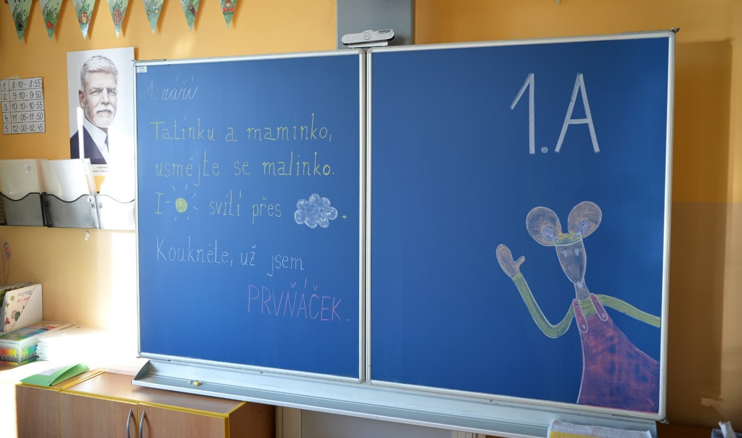 V pondělí 1. září se prvňáčci vydali po stopách myšičky až k nám do třídy 1. A. Společně jsme se přivítali a začali jsme naší první školní hodinu v kroužku na koberci, kde jsme se společně seznámili.