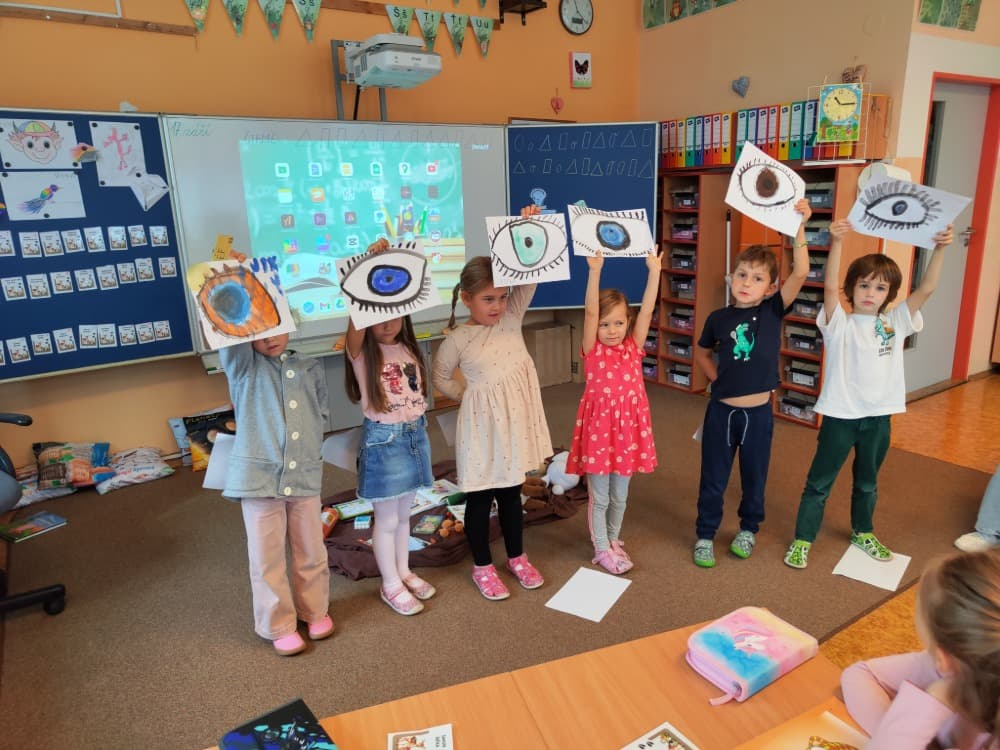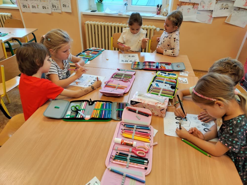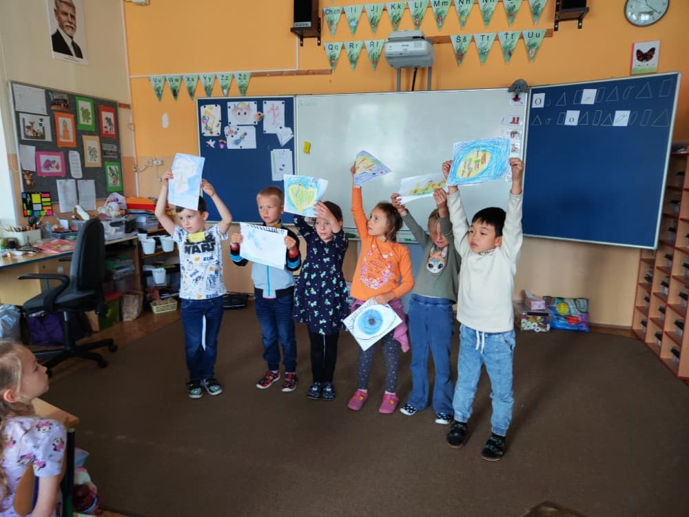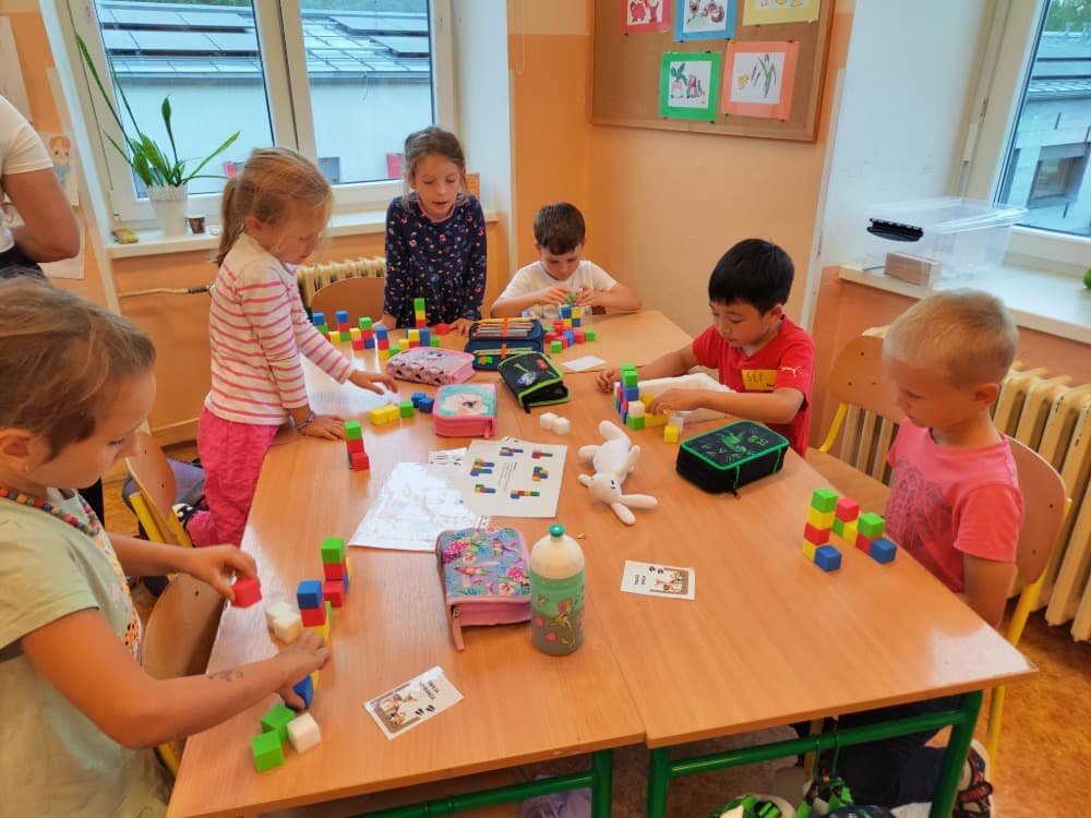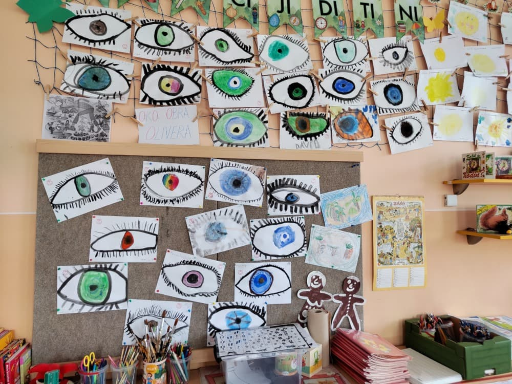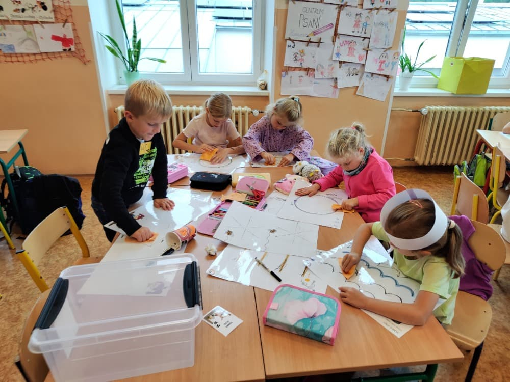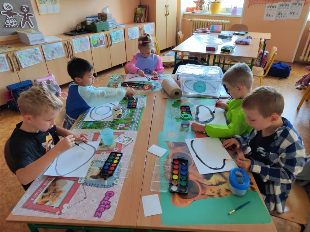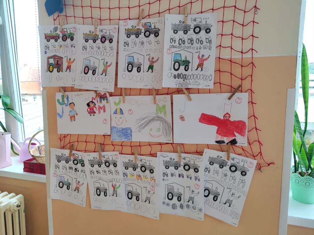 Naše druhá centra byla na písmenko O. V centru vědy a objevů se třídilo ovoce, v matematice jsme počítali hračky v obchodě a podle obrázků stavěli z krychlí, ve čtení poslouchali pohádku o neposlušných kůzlátkách a pojmenovávali věci na o, v psaní jsme přesně obtahovali, skládali skládačky písmenka o, kreslili kola k traktoru pana Oty z pohádky k písmenku o a v ateliéru malovali oko obra Olivera. Někdo stihl nakreslit i jeho ostrov.