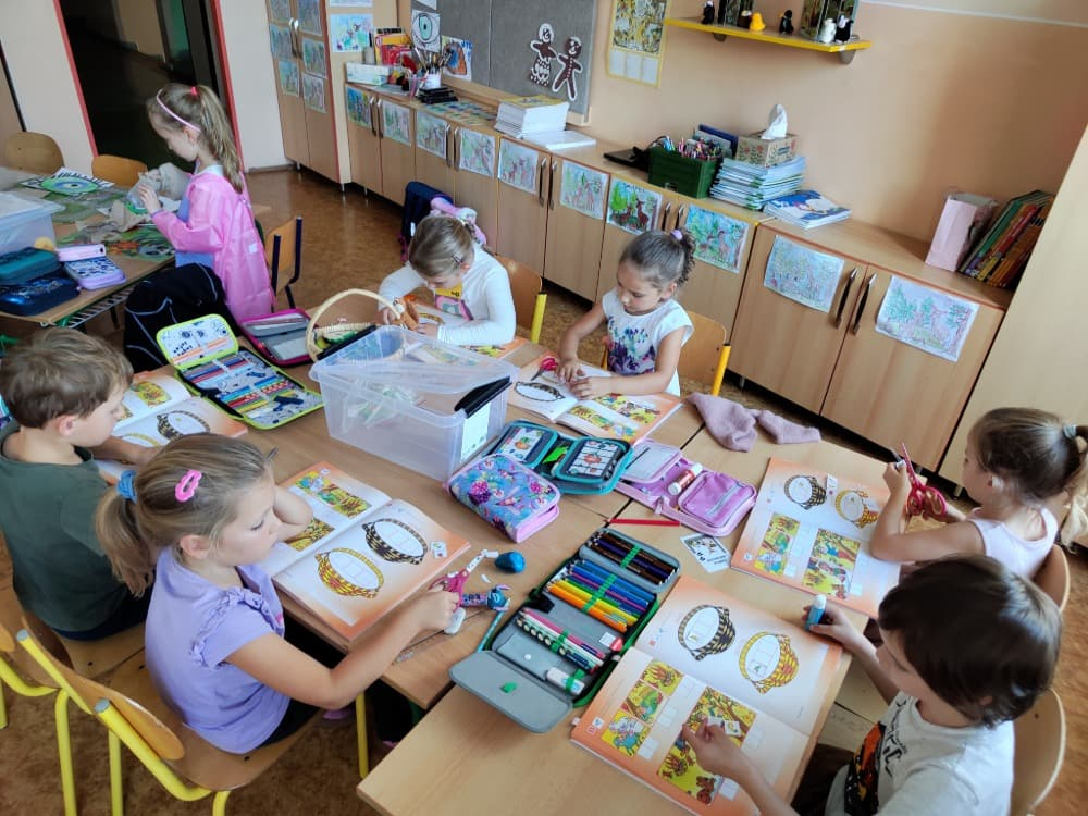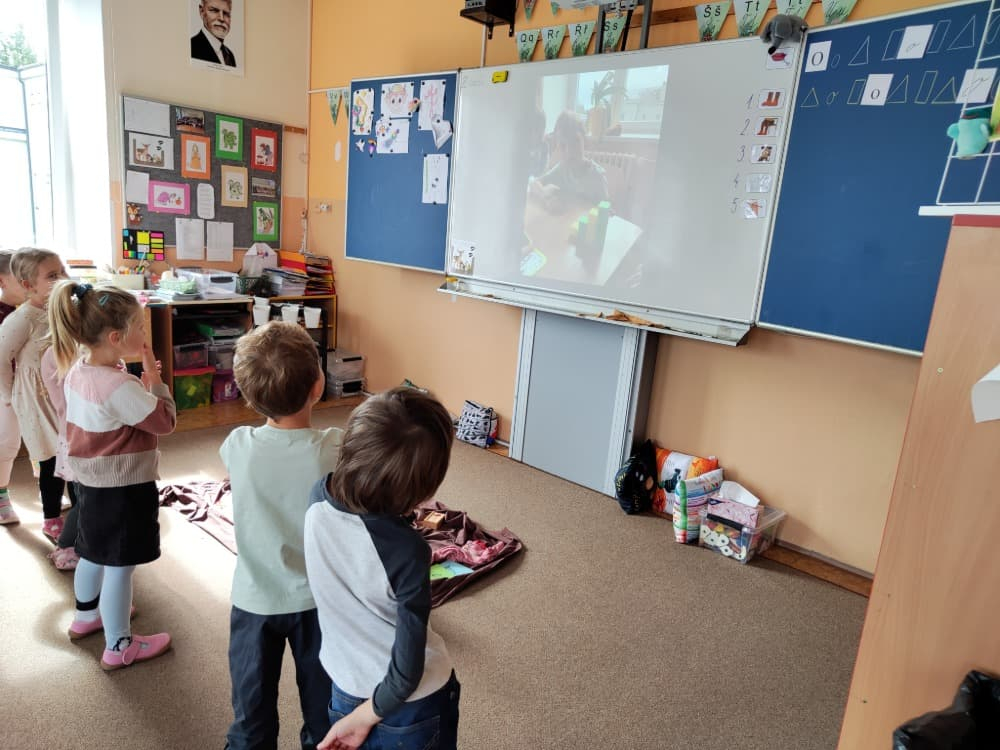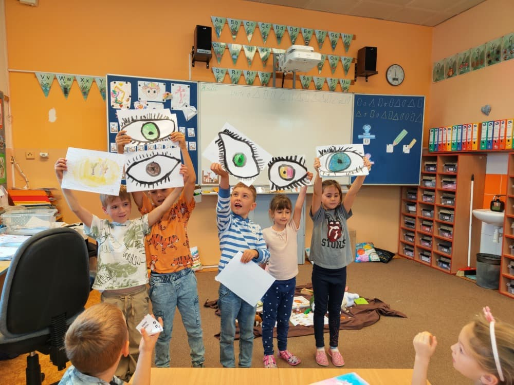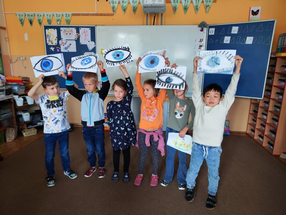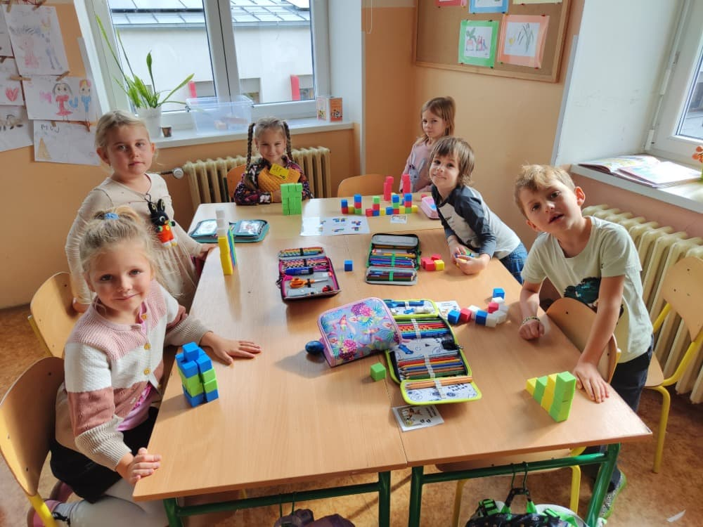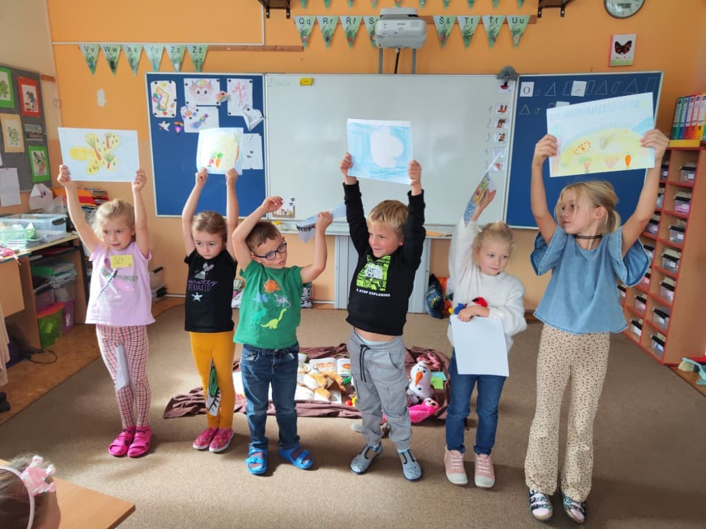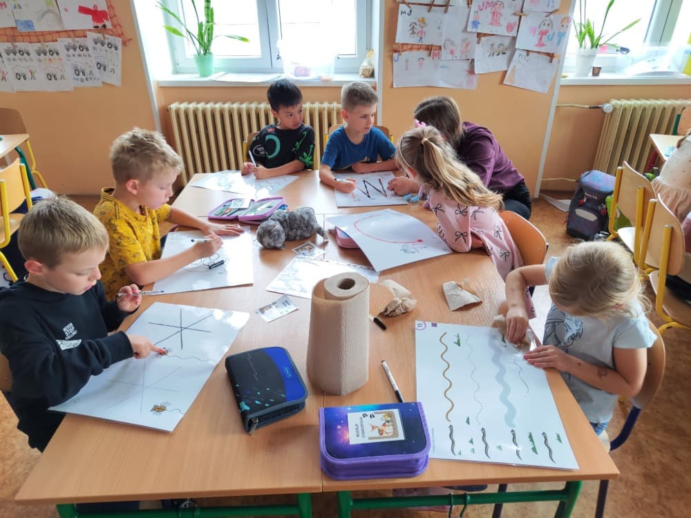 Naše druhá centra byla na písmenko O. V centru vědy a objevů se třídilo ovoce, v matematice jsme počítali hračky v obchodě a podle obrázků stavěli z krychlí, ve čtení poslouchali pohádku o neposlušných kůzlátkách a pojmenovávali věci na o, v psaní jsme přesně obtahovali, skládali skládačky písmenka o, kreslili kola k traktoru pana Oty z pohádky k písmenku o a v ateliéru malovali oko obra Olivera. Někdo stihl nakreslit i jeho ostrov.