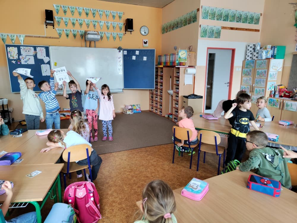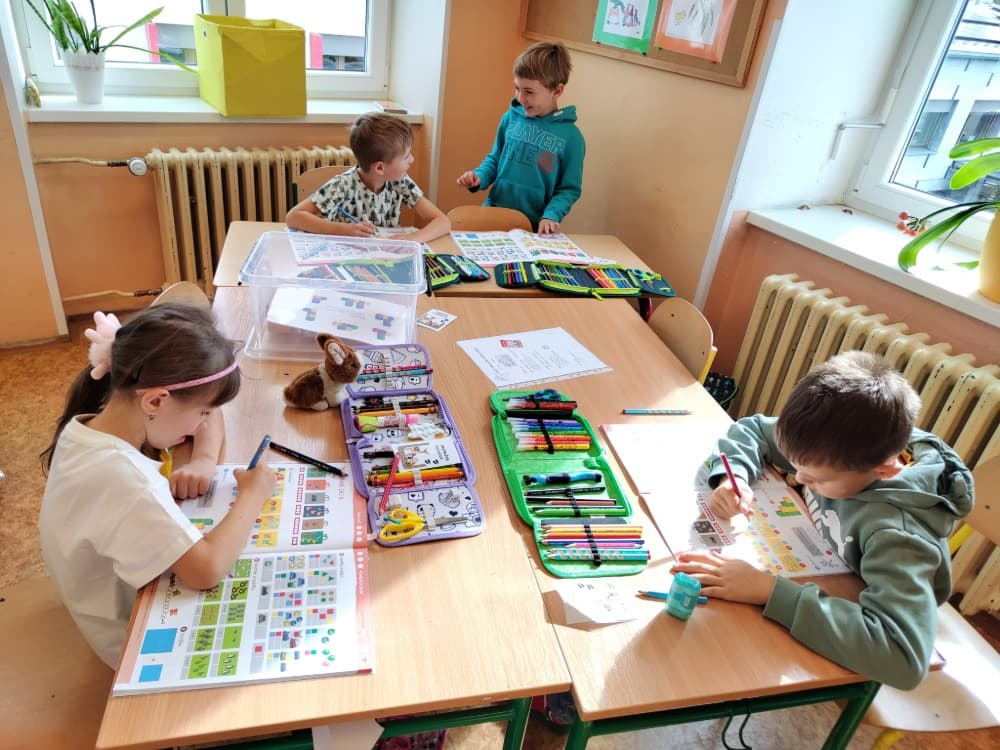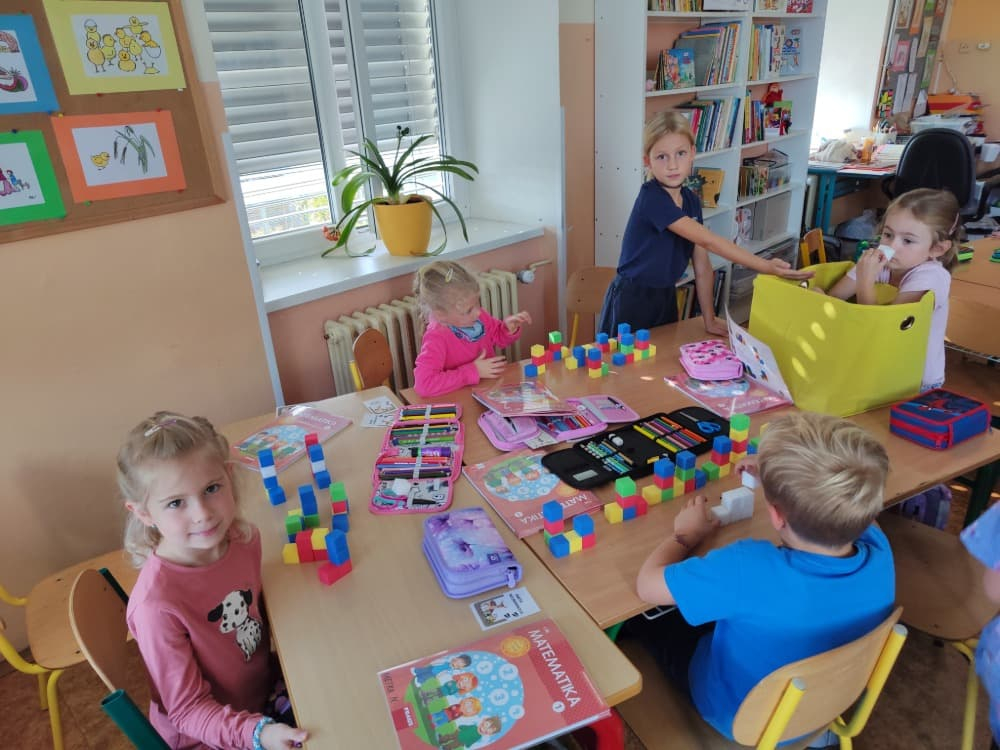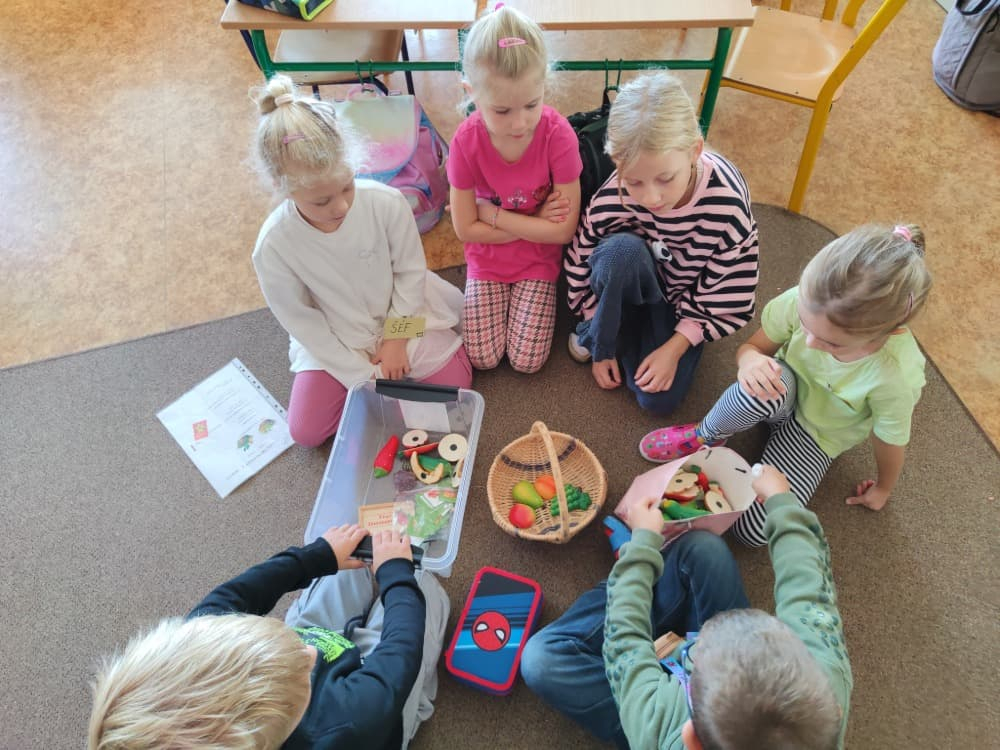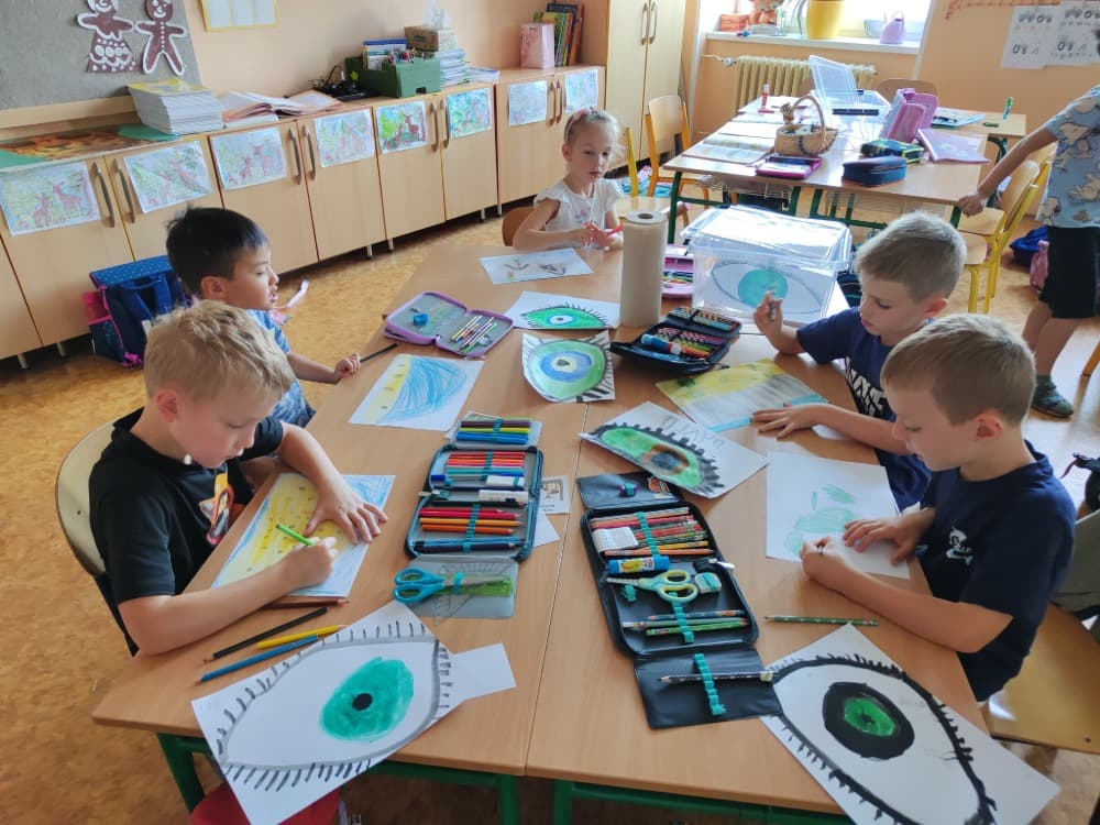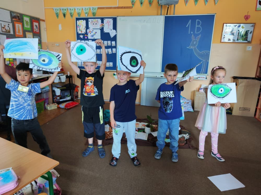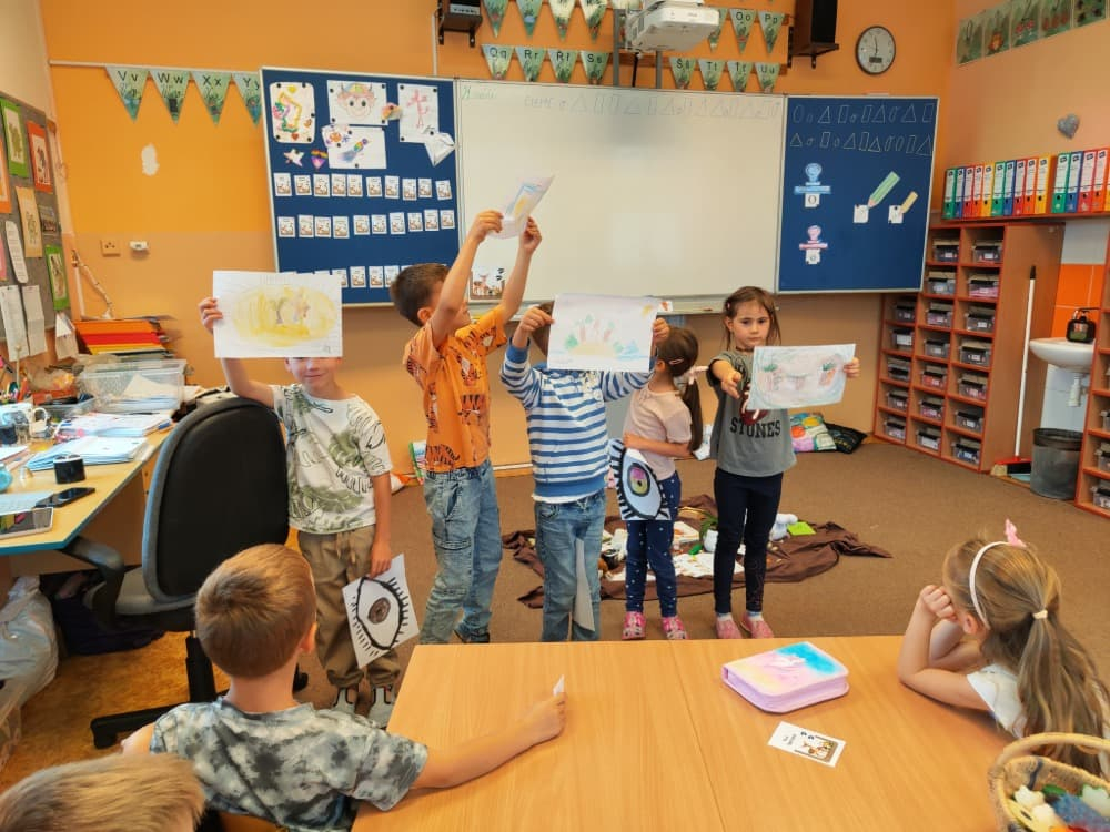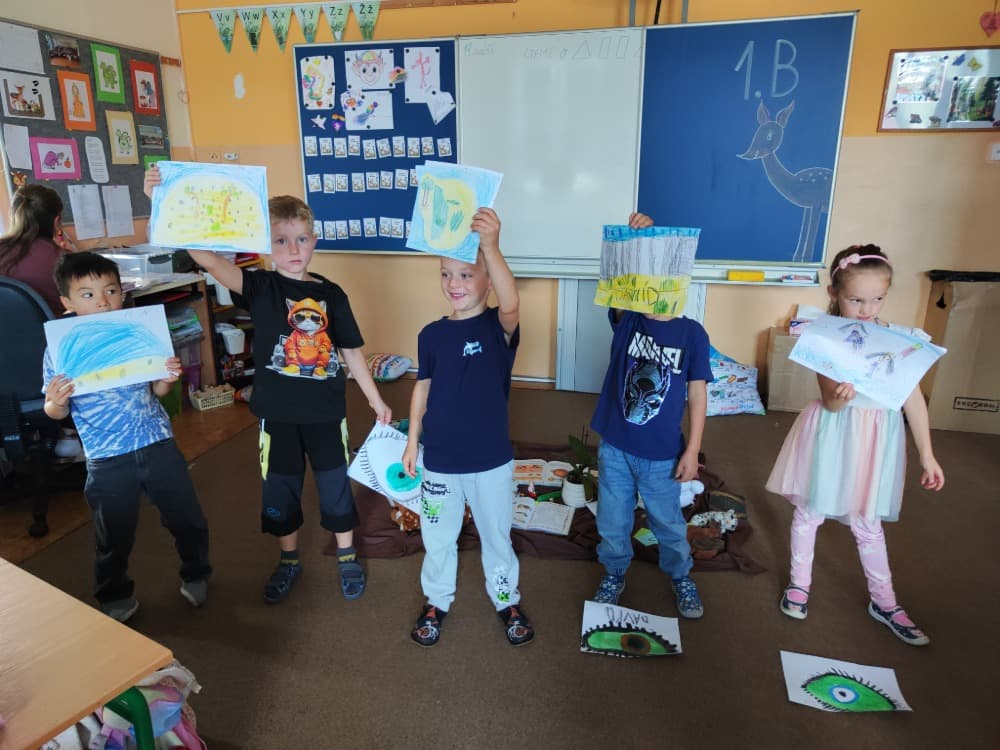 Naše druhá centra byla na písmenko O. V centru vědy a objevů se třídilo ovoce, v matematice jsme počítali hračky v obchodě a podle obrázků stavěli z krychlí, ve čtení poslouchali pohádku o neposlušných kůzlátkách a pojmenovávali věci na o, v psaní jsme přesně obtahovali, skládali skládačky písmenka o, kreslili kola k traktoru pana Oty z pohádky k písmenku o a v ateliéru malovali oko obra Olivera. Někdo stihl nakreslit i jeho ostrov.