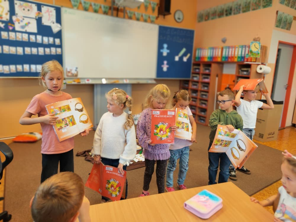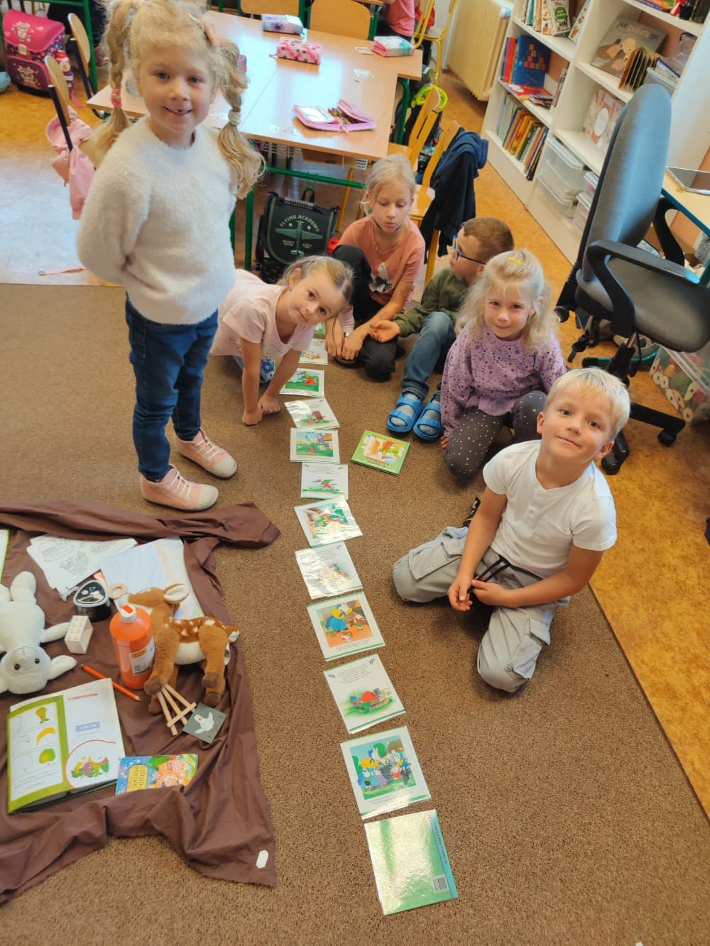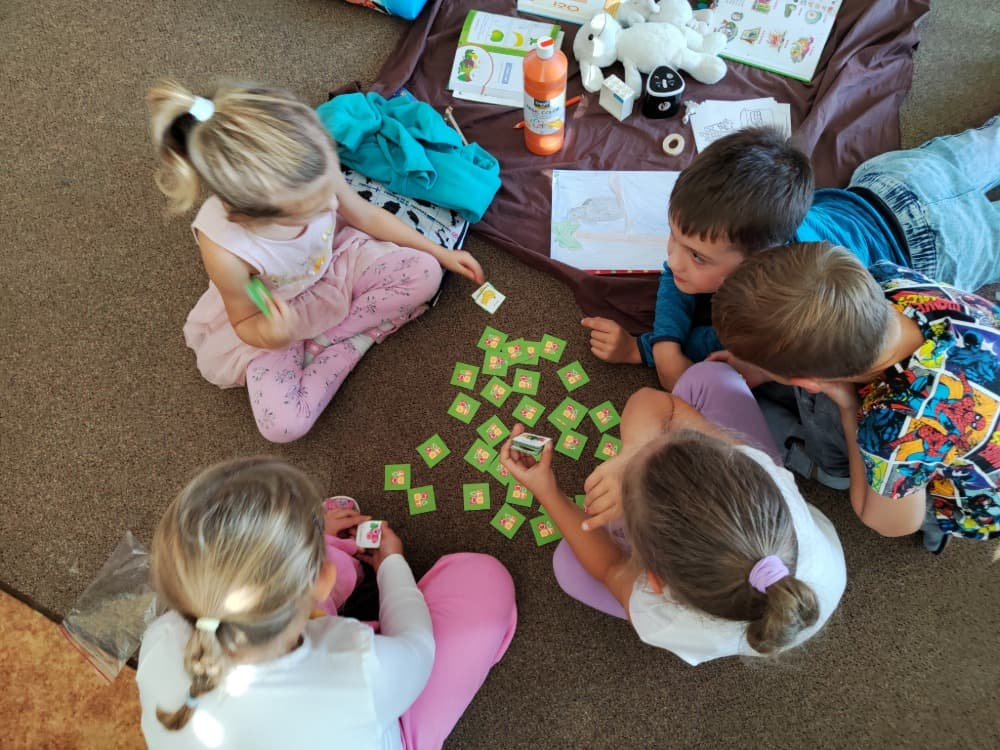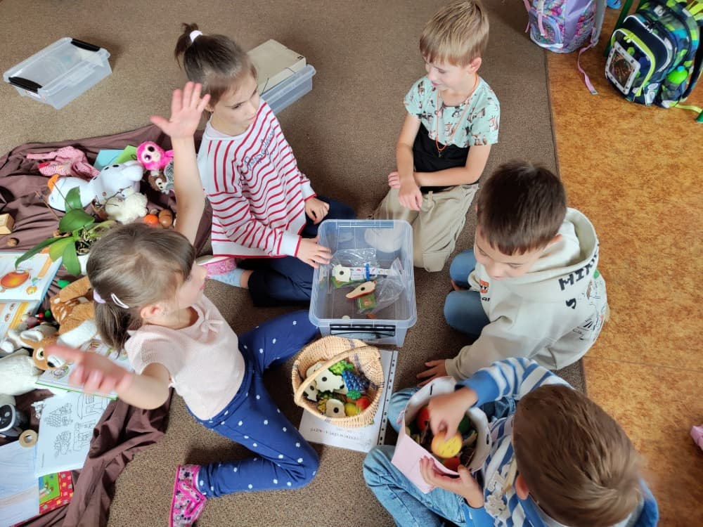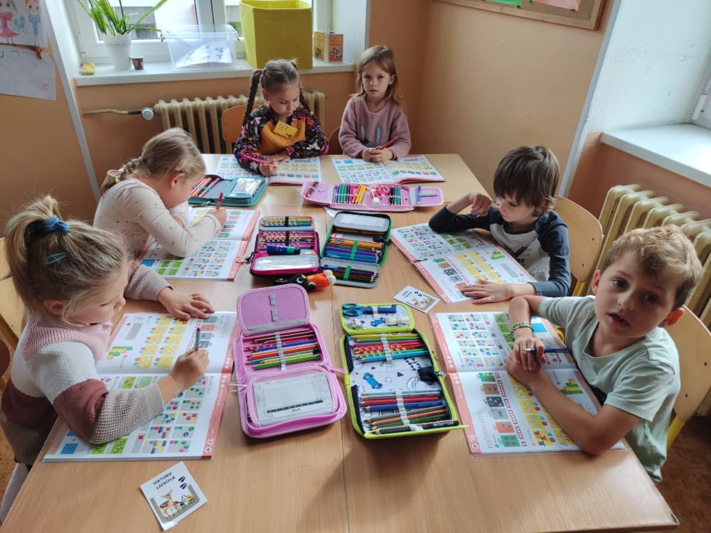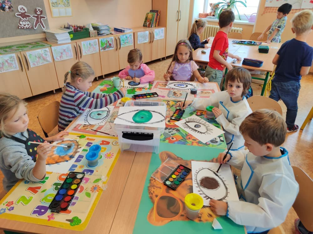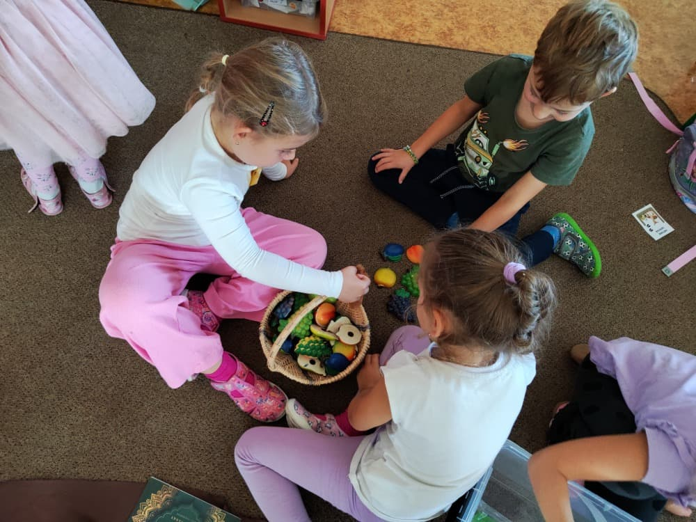 Naše druhá centra byla na písmenko O. V centru vědy a objevů se třídilo ovoce, v matematice jsme počítali hračky v obchodě a podle obrázků stavěli z krychlí, ve čtení poslouchali pohádku o neposlušných kůzlátkách a pojmenovávali věci na o, v psaní jsme přesně obtahovali, skládali skládačky písmenka o, kreslili kola k traktoru pana Oty z pohádky k písmenku o a v ateliéru malovali oko obra Olivera. Někdo stihl nakreslit i jeho ostrov.