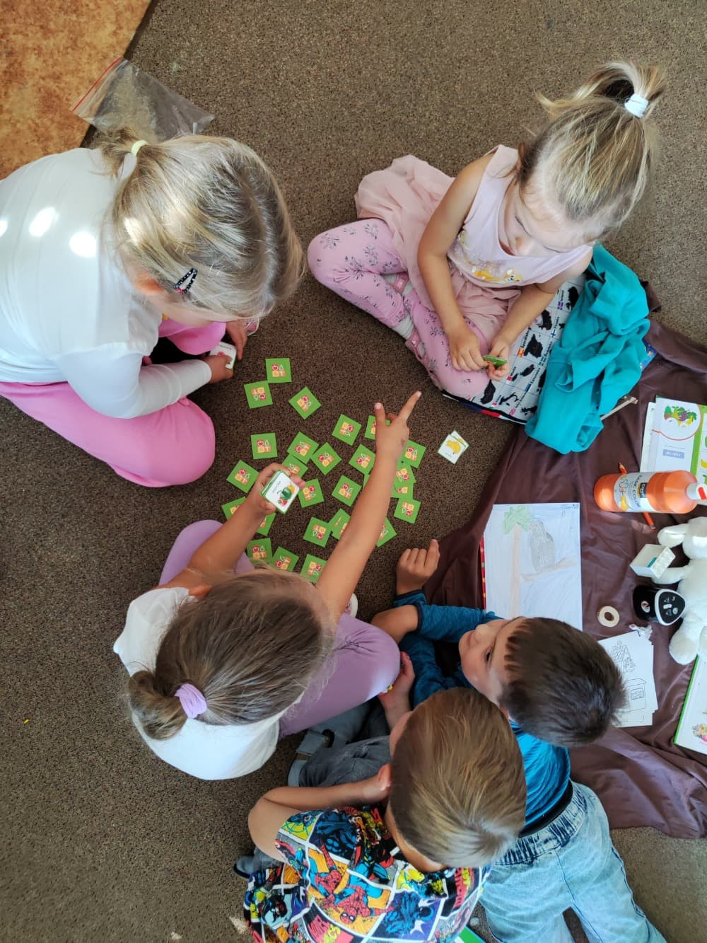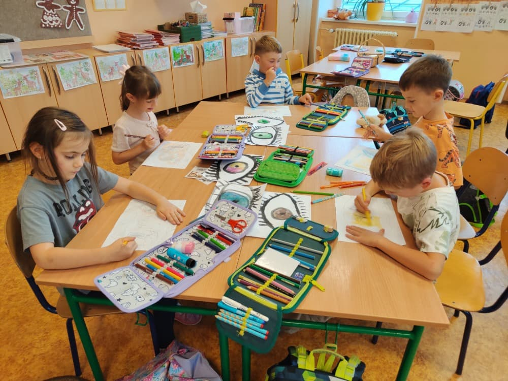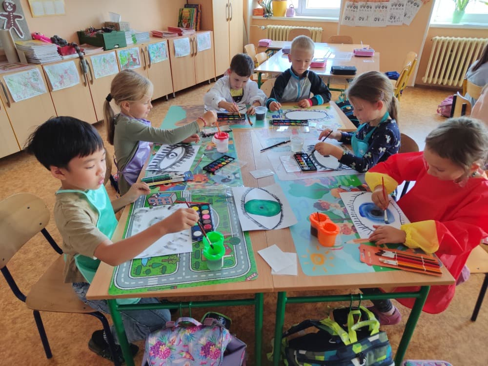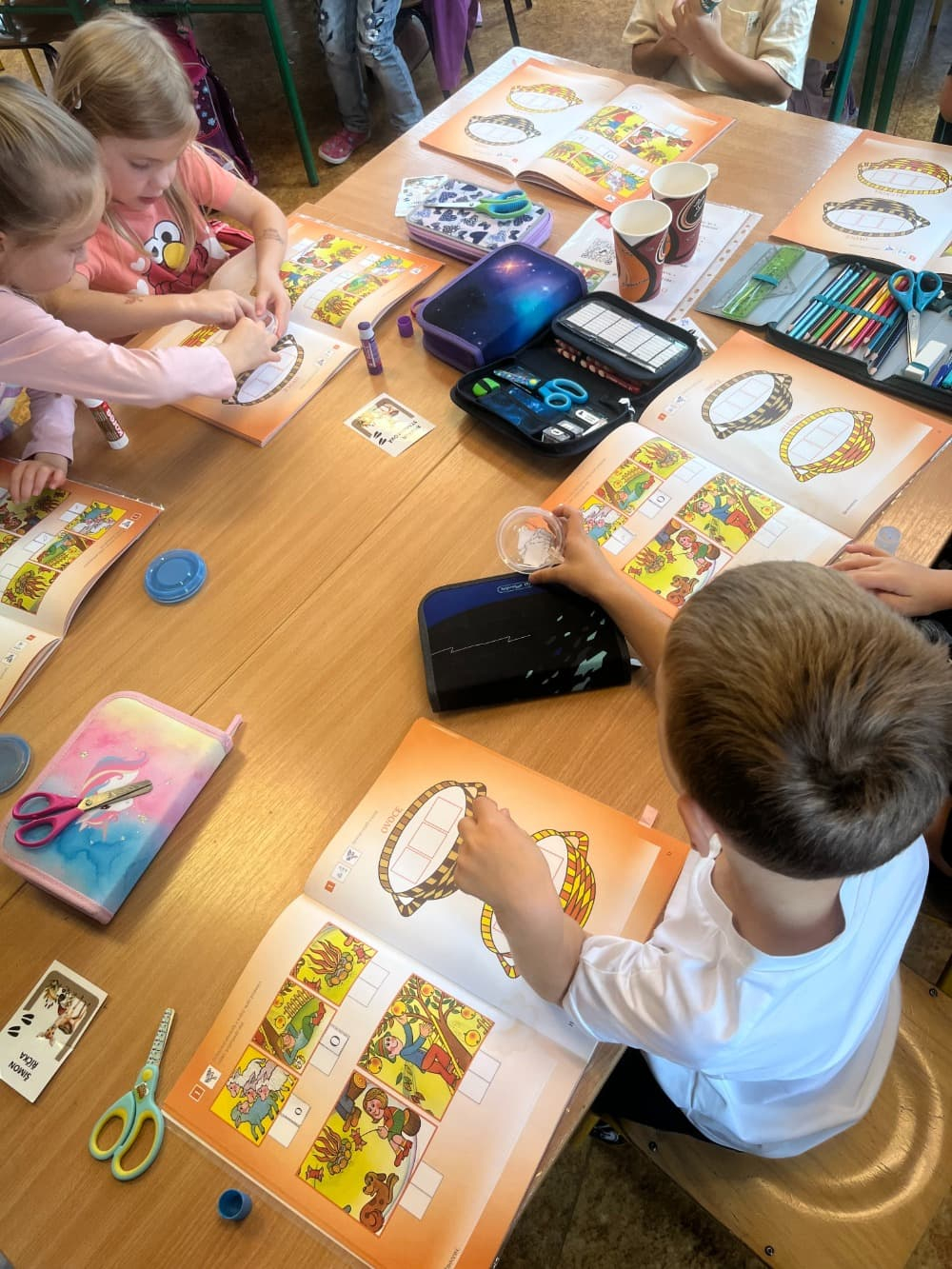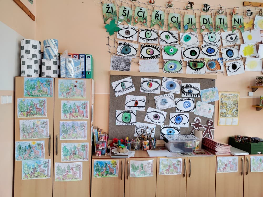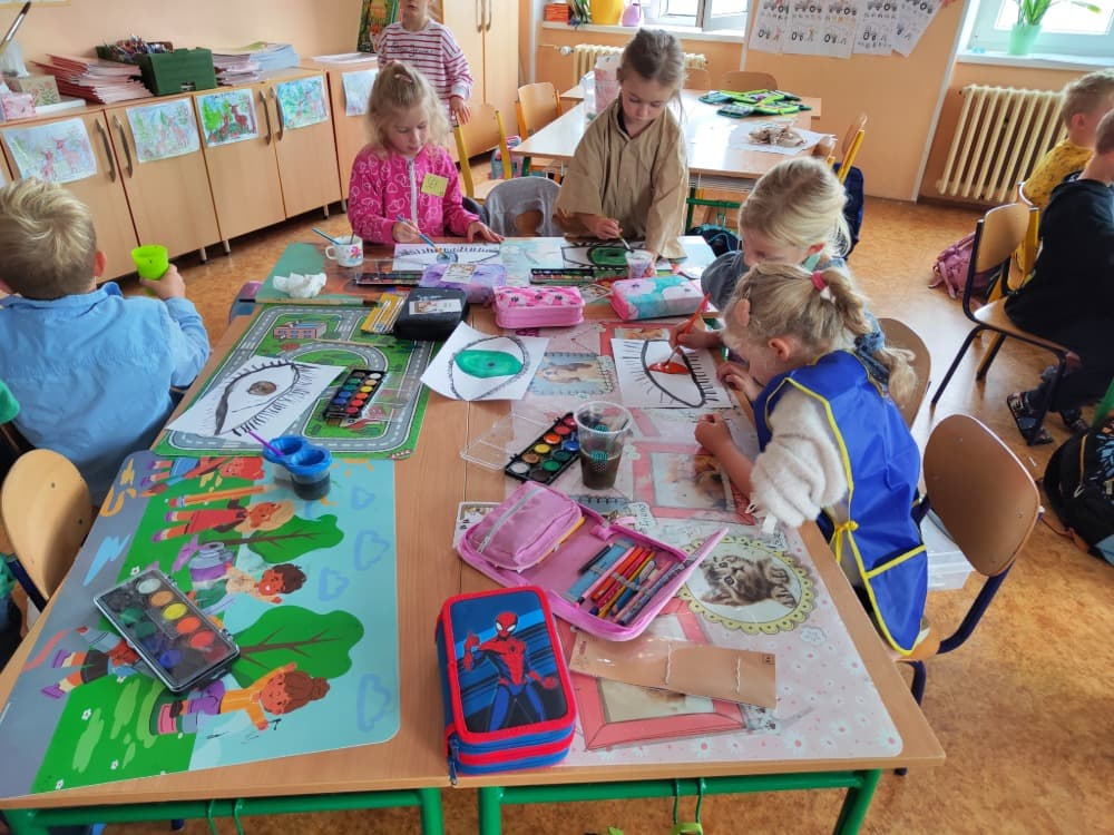 Naše druhá centra byla na písmenko O. V centru vědy a objevů se třídilo ovoce, v matematice jsme počítali hračky v obchodě a podle obrázků stavěli z krychlí, ve čtení poslouchali pohádku o neposlušných kůzlátkách a pojmenovávali věci na o, v psaní jsme přesně obtahovali, skládali skládačky písmenka o, kreslili kola k traktoru pana Oty z pohádky k písmenku o a v ateliéru malovali oko obra Olivera. Někdo stihl nakreslit i jeho ostrov.