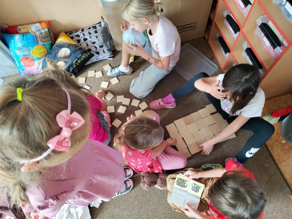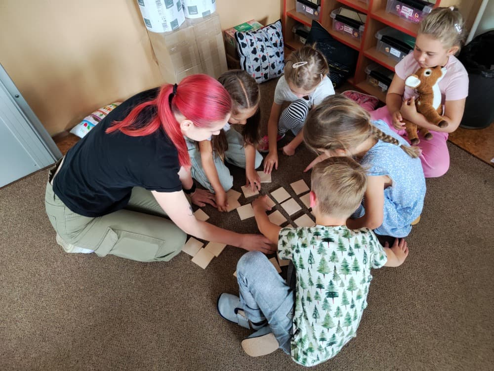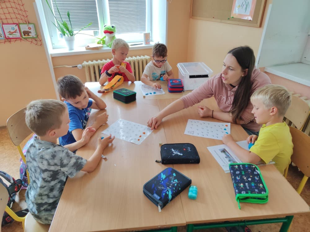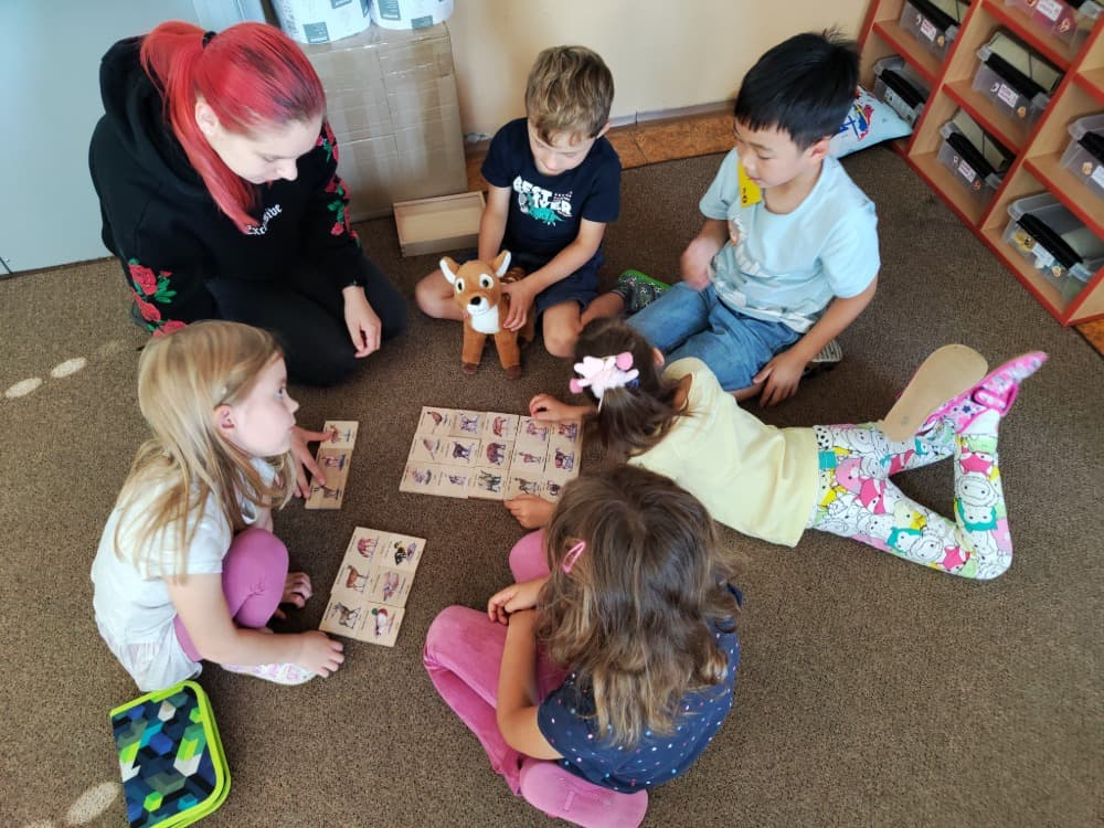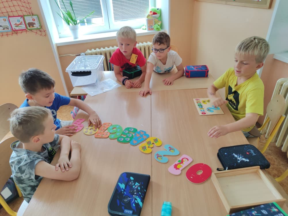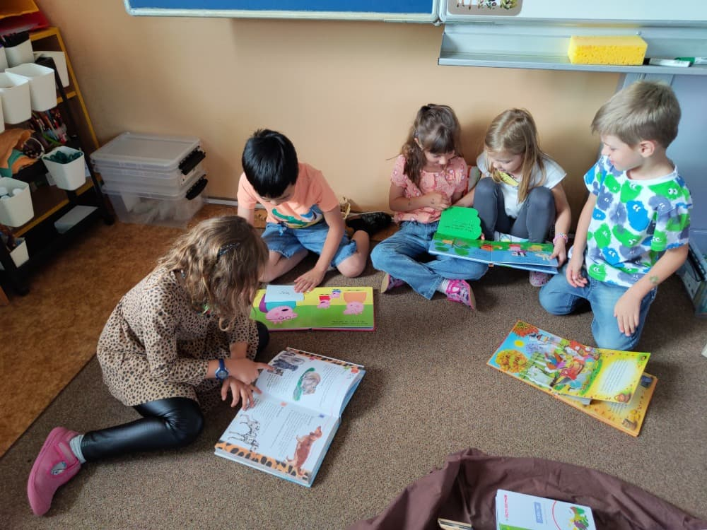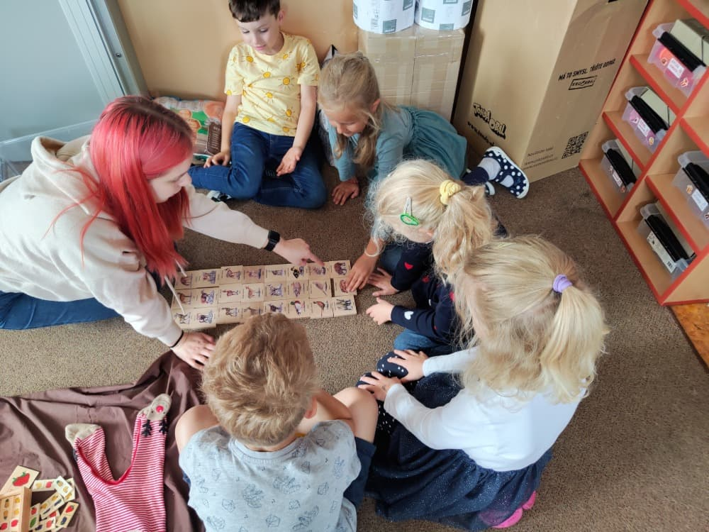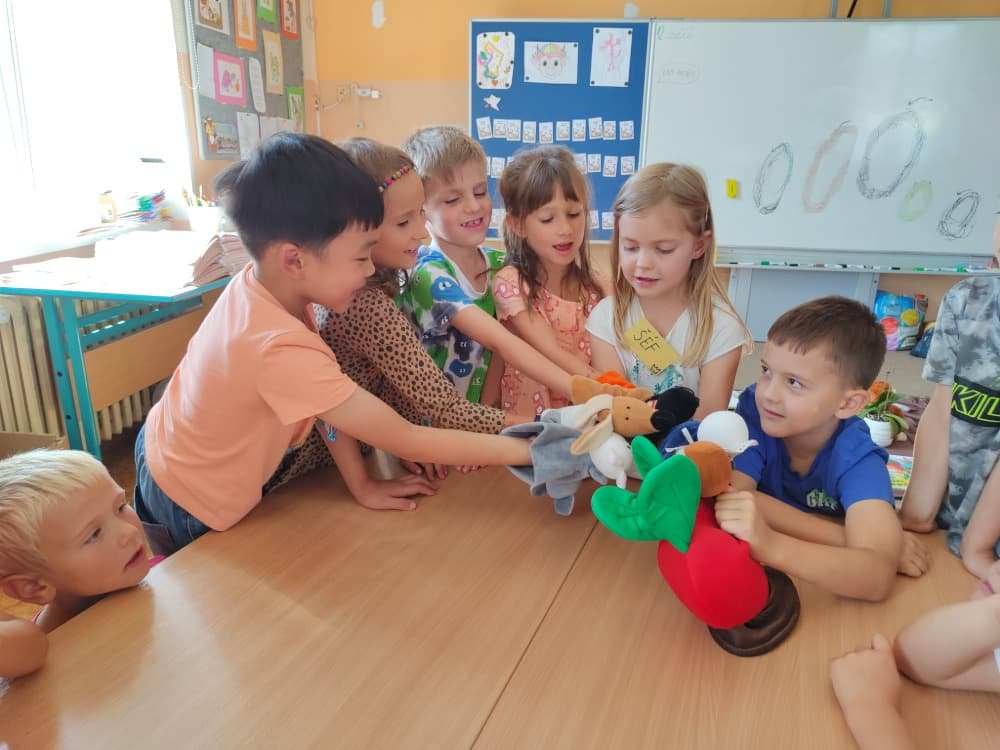 Hned druhý školní týden jsme se odvážně vrhli na práci v centrech aktivit. Práce nám šla hezky od ruky. Prvňáčci pilně pracovali a báječně spolupracovali. Někteří už ostatním i četli zadání. Čekalo je pečlivé vybarvování srnečky v ateliéru, lepení much na mucholapku u žabky Márinky v matematice a "chytání" much pro ni ke svačině. Poznávání a psaní písmenek J jako Jeníček a M jako Mařenka z perníkové chaloupky v centru psaní, poslouchání pohádky o veliké řepě, řazení obrázků a poté její dramatizace v centru čtení a poznávání lesních zvířecích rodin v centru vědy a objevů. Prvňáčci skvěle zvládli i své první hodnotící kruhy a své práce v nich krásně odprezentovali.