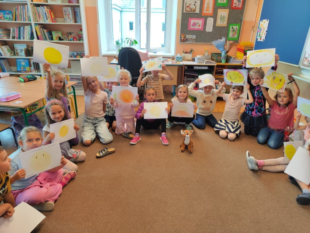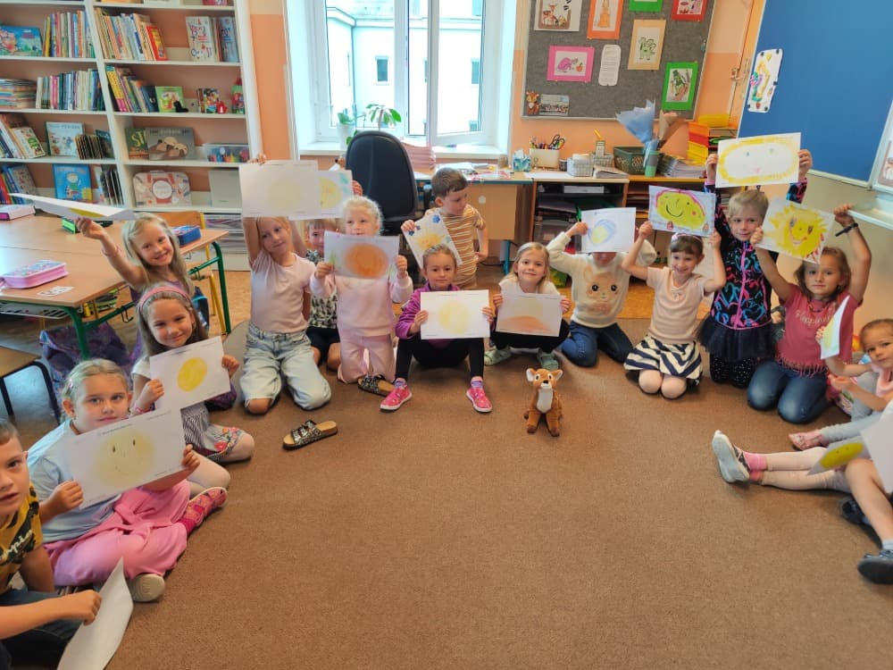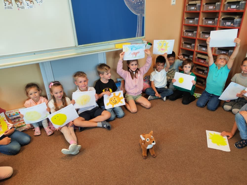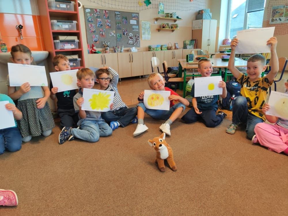 Hned 1. září na děti čekal jejich úplně první domácí úkol. Dala jim ho třídní srnečka. Poprosila je o nakreslení sluníček, aby nám pak sluníčka ve třídě hezky svítila a bylo nám spolu dobře. Sluníčka se prvňáčkům moc povedla.