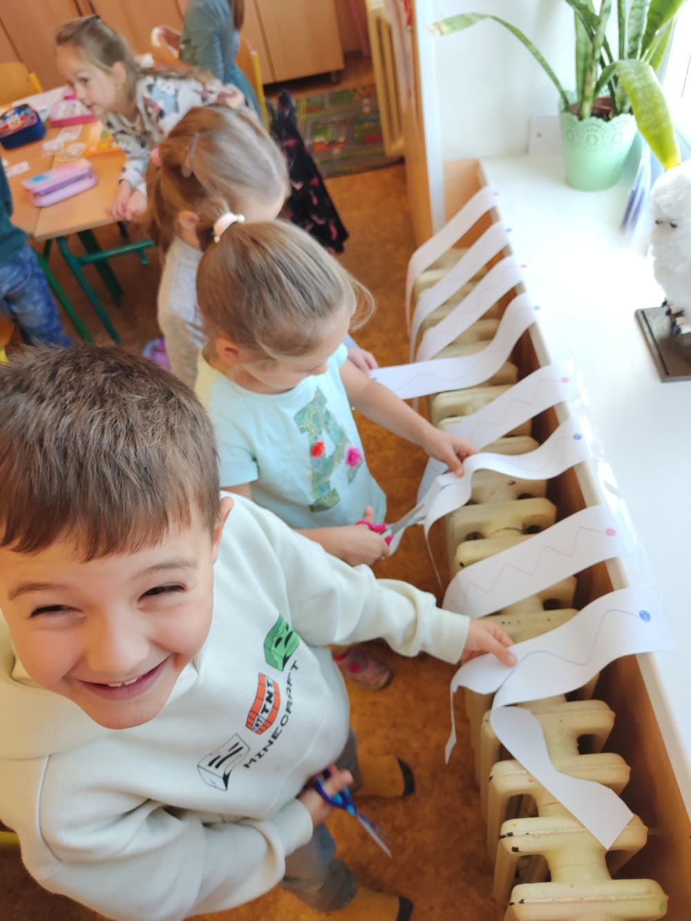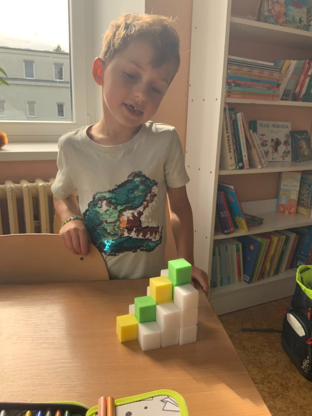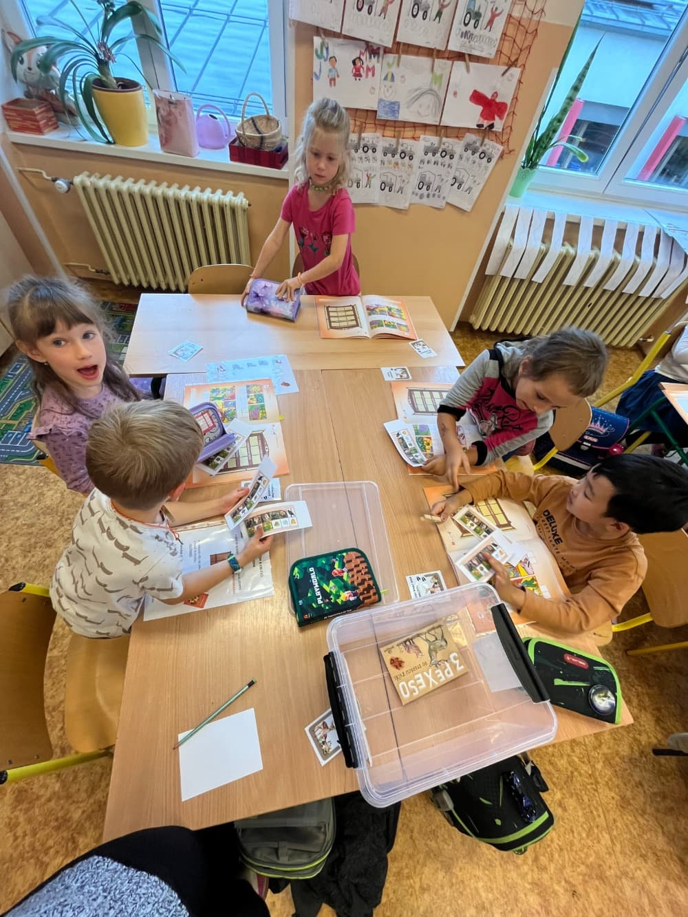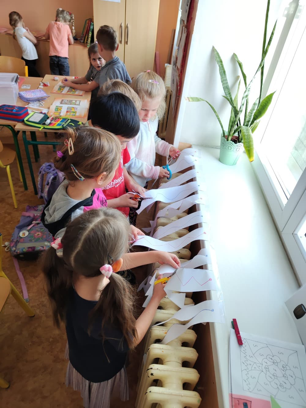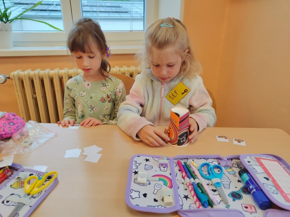 Třetí centra aktivit se celá točila kolem S. V ateliéru se tiskaly stopy zvířat, vzniklo první společné dílo a spousta malých obrázků, v centru vědy a objevů se pátralo, čí stopy vedou do skříně a do sešitové skříně se skládala spousta věcí. V matematice se stopovala srnka, stoupalo se do stop správným směrem, schovávala se zvířátka a skládalo se z papíru. V centru psaní se stříhalo, sypala slunečnicová semínka (přesunovala ve špetičce ze tří prstů na trénování správného úchopu), s citem se obtahovala vystouplá čísla a písmena, vybarvoval se strom podle tvarů písmenka s a skládalo se rozstříhané s. V centru čtení se poslouchala pohádka o Smolíčkovi, skládaly se obrázky a stříhaly a srovnávaly se symboly podle zadání. Práce dětí byla super!