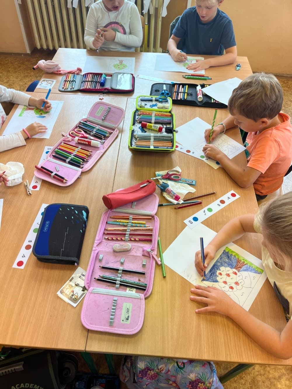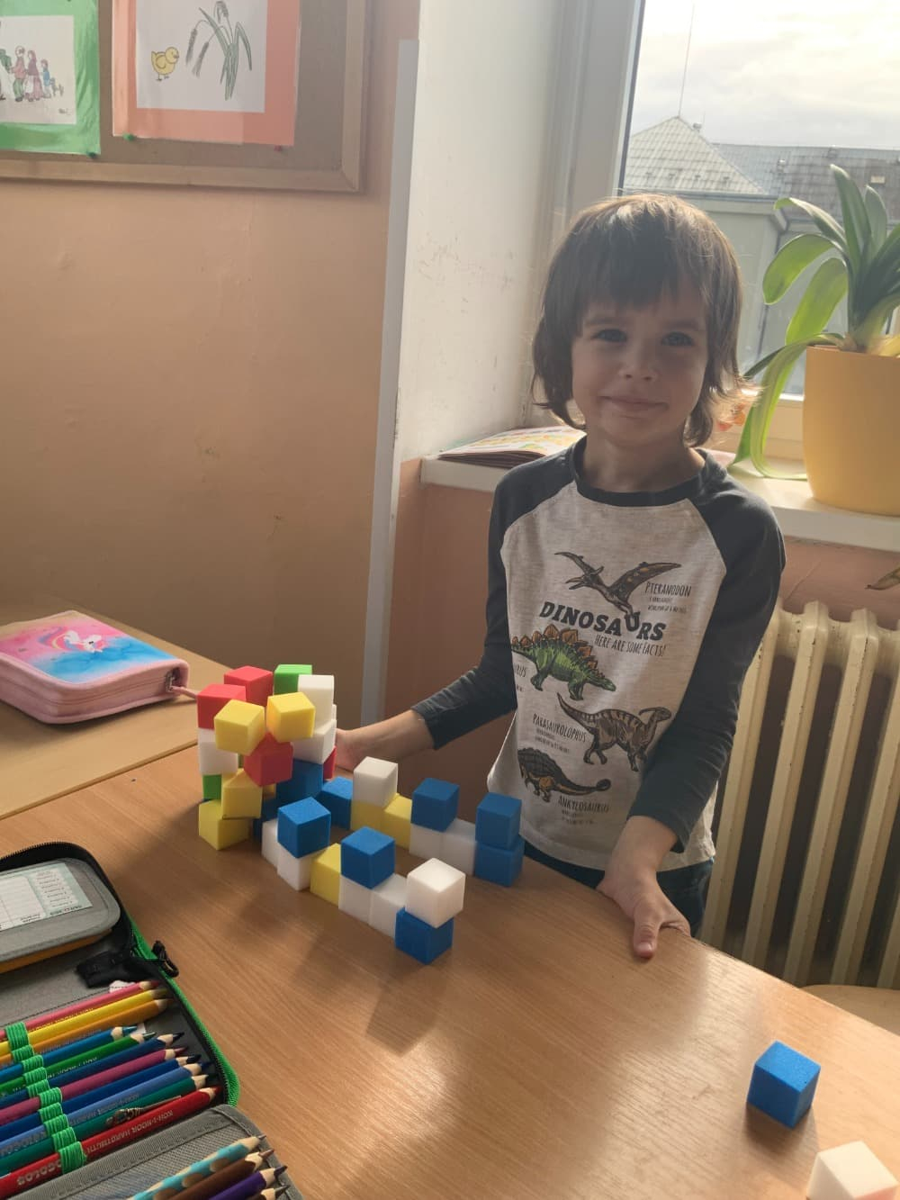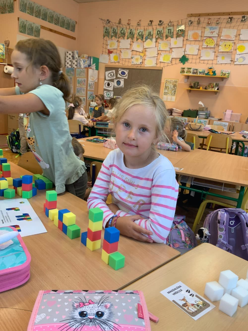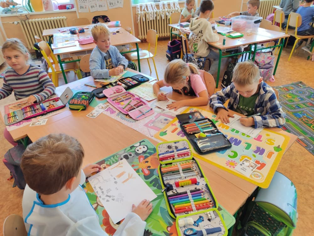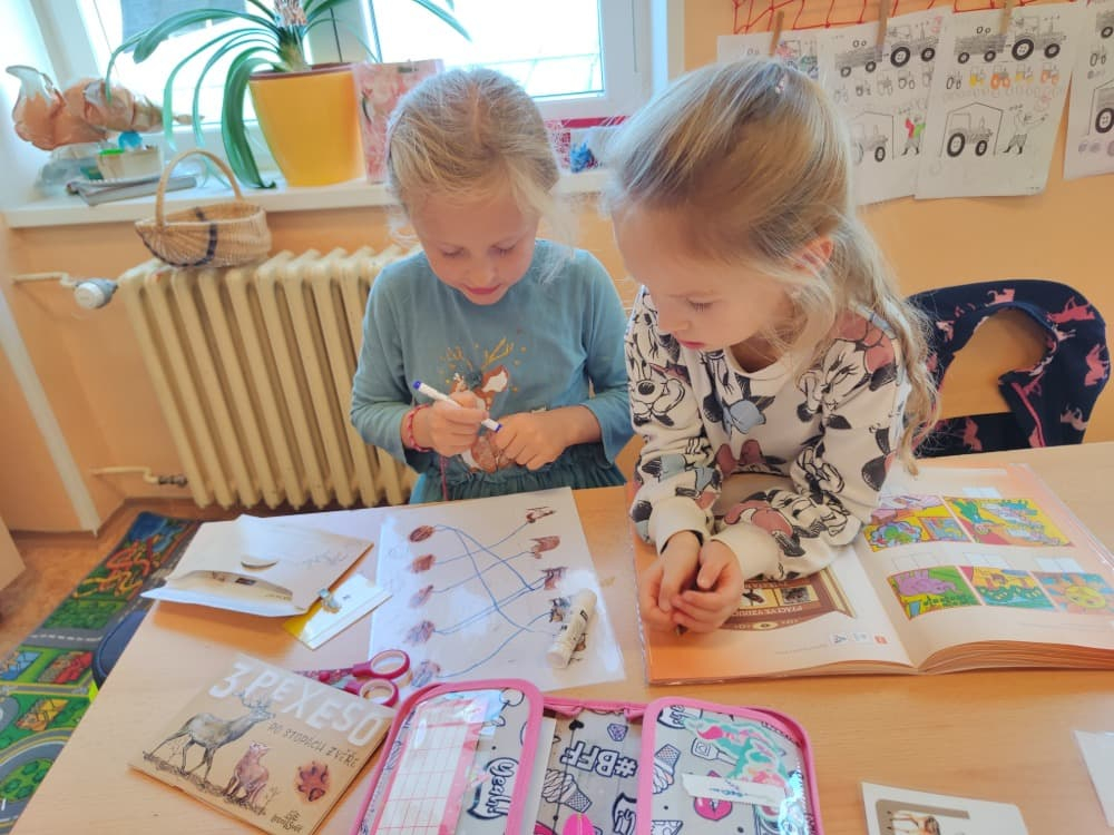 Třetí centra aktivit se celá točila kolem S. V ateliéru se tiskaly stopy zvířat, vzniklo první společné dílo a spousta malých obrázků, v centru vědy a objevů se pátralo, čí stopy vedou do skříně a do sešitové skříně se skládala spousta věcí. V matematice se stopovala srnka, stoupalo se do stop správným směrem, schovávala se zvířátka a skládalo se z papíru. V centru psaní se stříhalo, sypala slunečnicová semínka (přesunovala ve špetičce ze tří prstů na trénování správného úchopu), s citem se obtahovala vystouplá čísla a písmena, vybarvoval se strom podle tvarů písmenka s a skládalo se rozstříhané s. V centru čtení se poslouchala pohádka o Smolíčkovi, skládaly se obrázky a stříhaly a srovnávaly se symboly podle zadání. Práce dětí byla super!