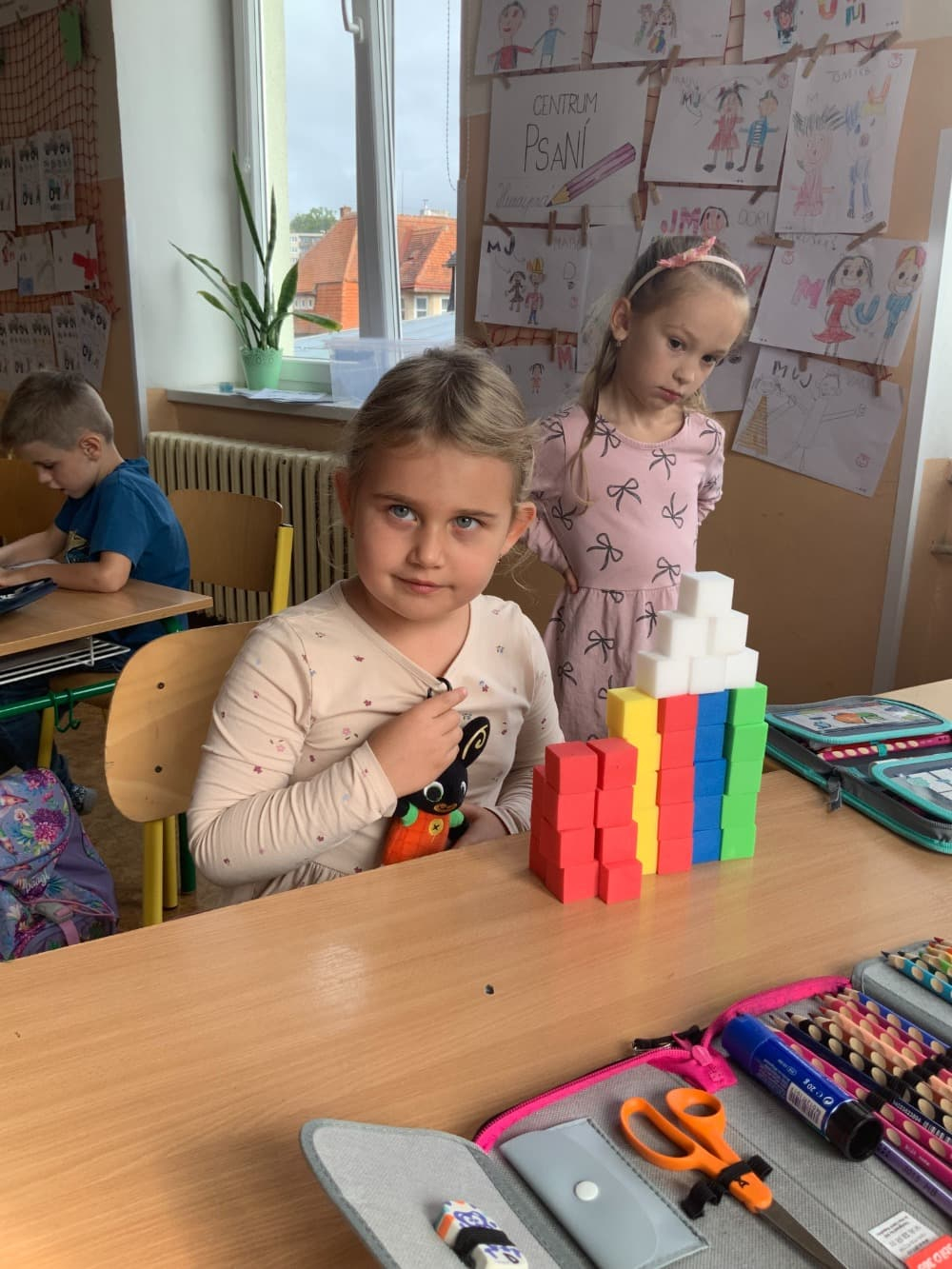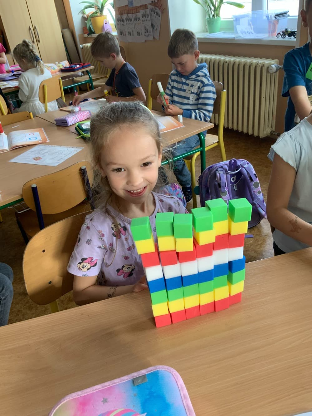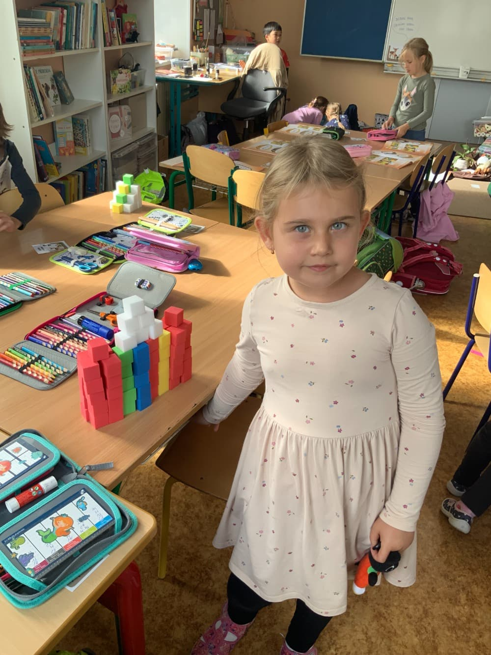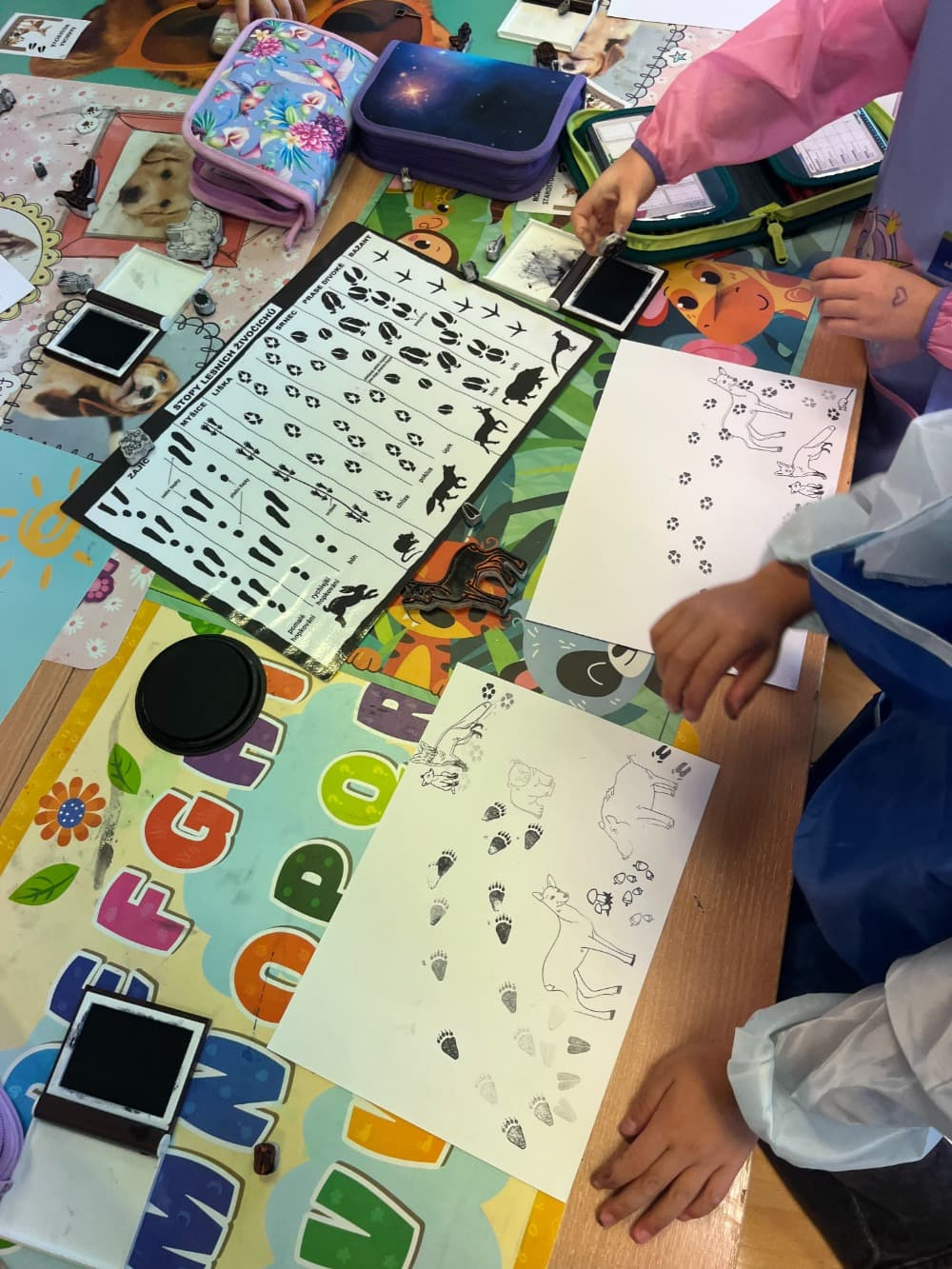 Třetí centra aktivit se celá točila kolem S. V ateliéru se tiskaly stopy zvířat, vzniklo první společné dílo a spousta malých obrázků, v centru vědy a objevů se pátralo, čí stopy vedou do skříně a do sešitové skříně se skládala spousta věcí. V matematice se stopovala srnka, stoupalo se do stop správným směrem, schovávala se zvířátka a skládalo se z papíru. V centru psaní se stříhalo, sypala slunečnicová semínka (přesunovala ve špetičce ze tří prstů na trénování správného úchopu), s citem se obtahovala vystouplá čísla a písmena, vybarvoval se strom podle tvarů písmenka s a skládalo se rozstříhané s. V centru čtení se poslouchala pohádka o Smolíčkovi, skládaly se obrázky a stříhaly a srovnávaly se symboly podle zadání. Práce dětí byla super!