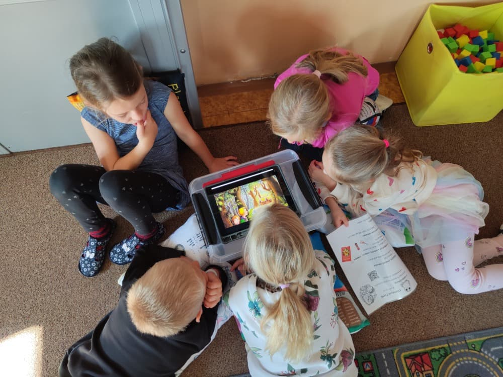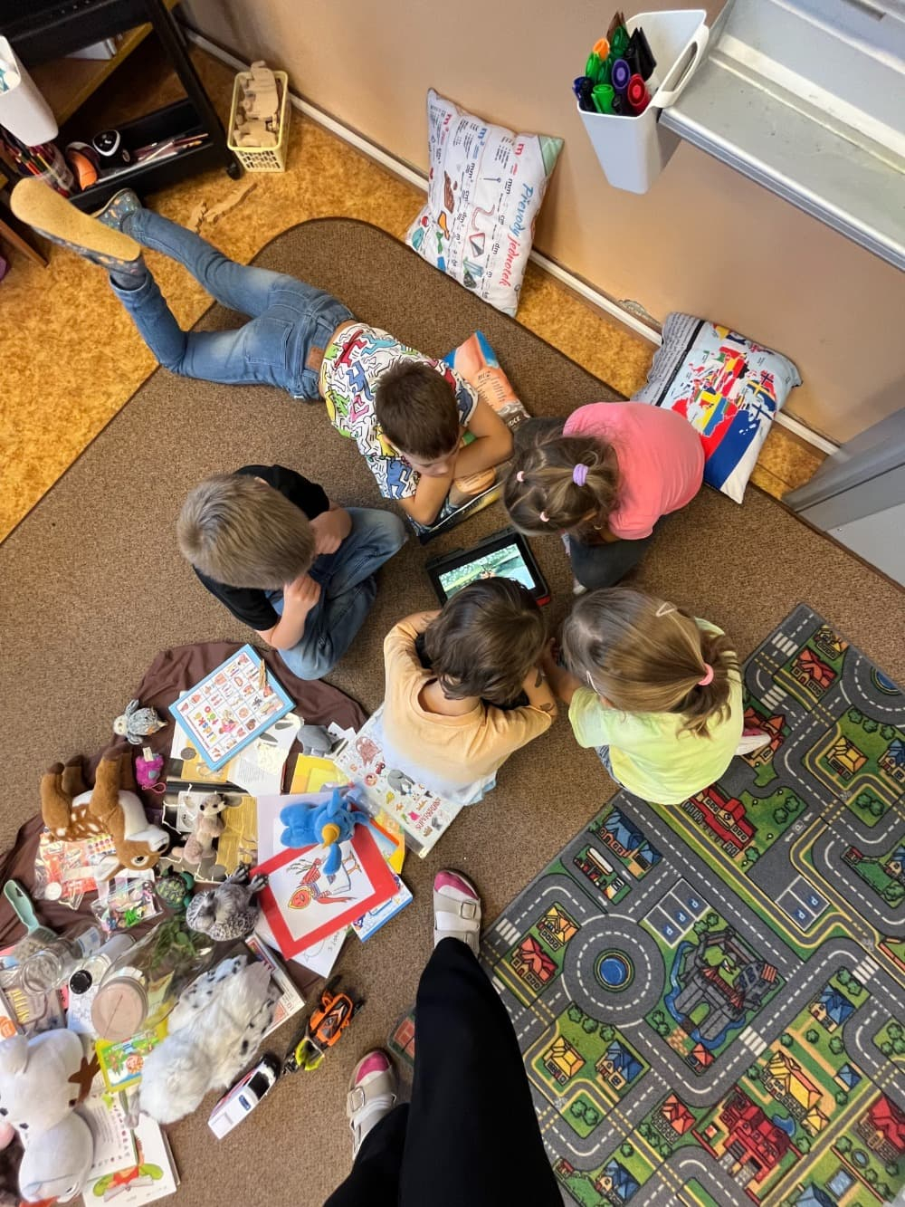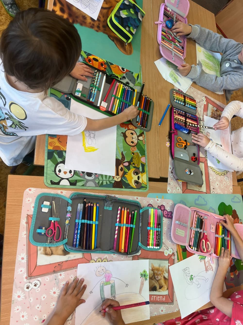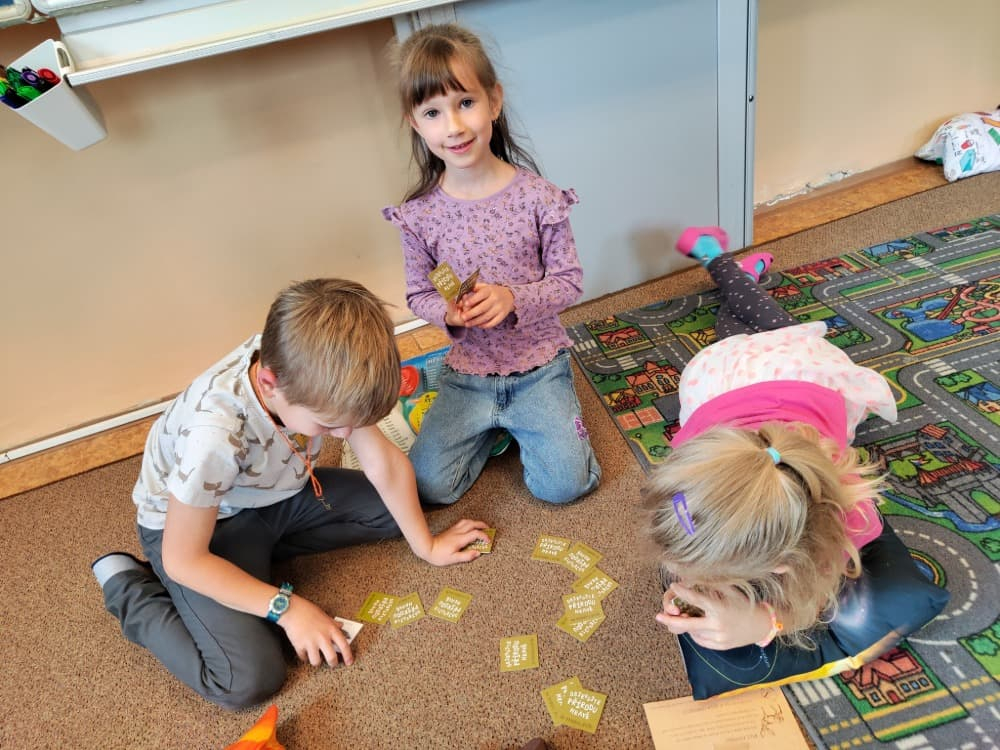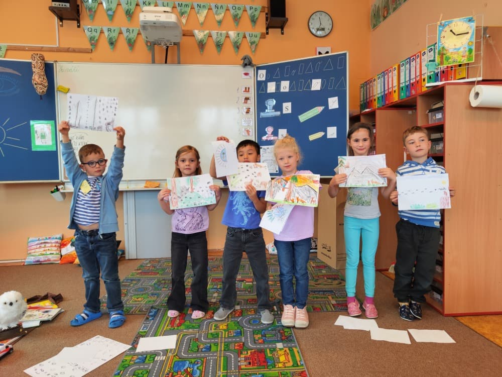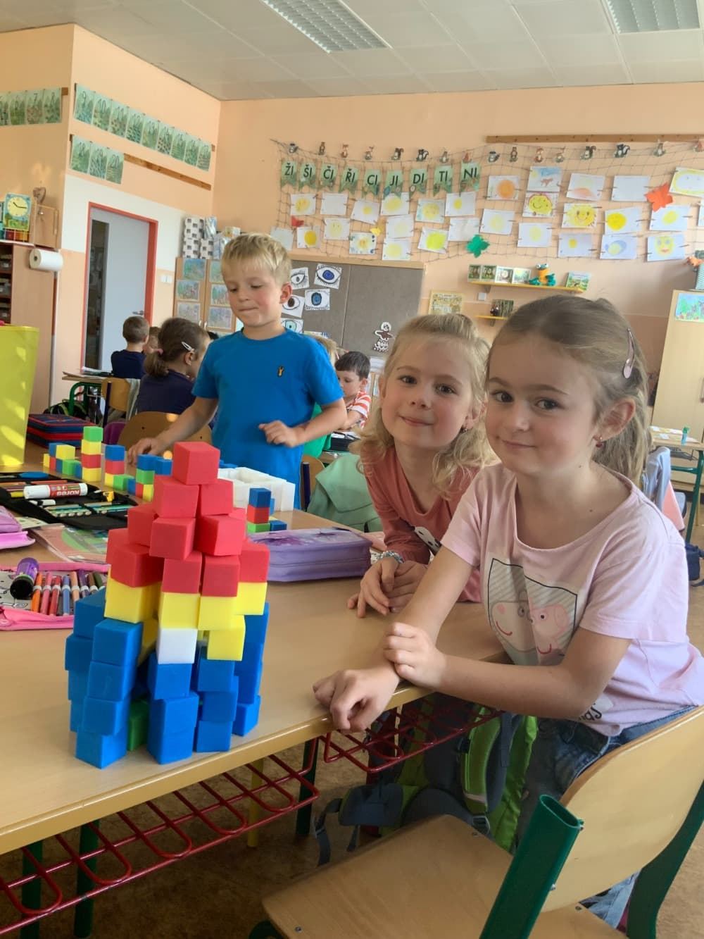 Třetí centra aktivit se celá točila kolem S. V ateliéru se tiskaly stopy zvířat, vzniklo první společné dílo a spousta malých obrázků, v centru vědy a objevů se pátralo, čí stopy vedou do skříně a do sešitové skříně se skládala spousta věcí. V matematice se stopovala srnka, stoupalo se do stop správným směrem, schovávala se zvířátka a skládalo se z papíru. V centru psaní se stříhalo, sypala slunečnicová semínka (přesunovala ve špetičce ze tří prstů na trénování správného úchopu), s citem se obtahovala vystouplá čísla a písmena, vybarvoval se strom podle tvarů písmenka s a skládalo se rozstříhané s. V centru čtení se poslouchala pohádka o Smolíčkovi, skládaly se obrázky a stříhaly a srovnávaly se symboly podle zadání. Práce dětí byla super!