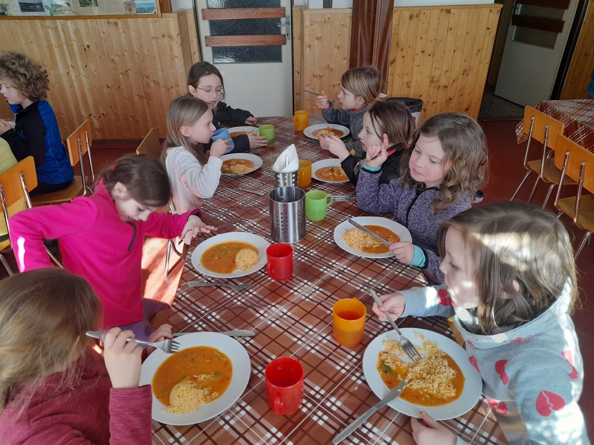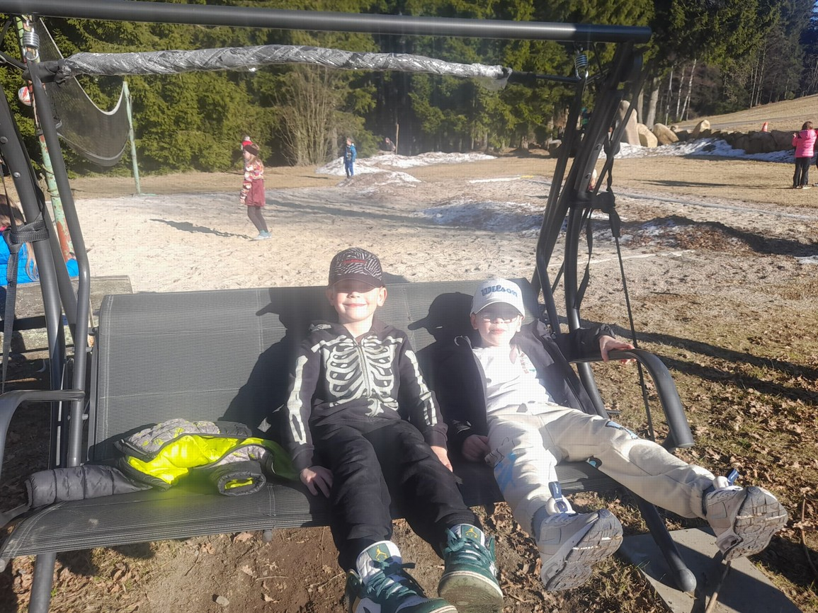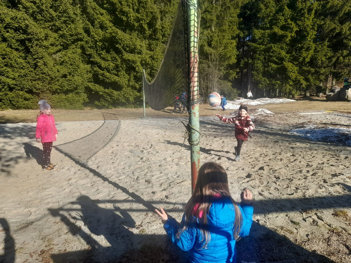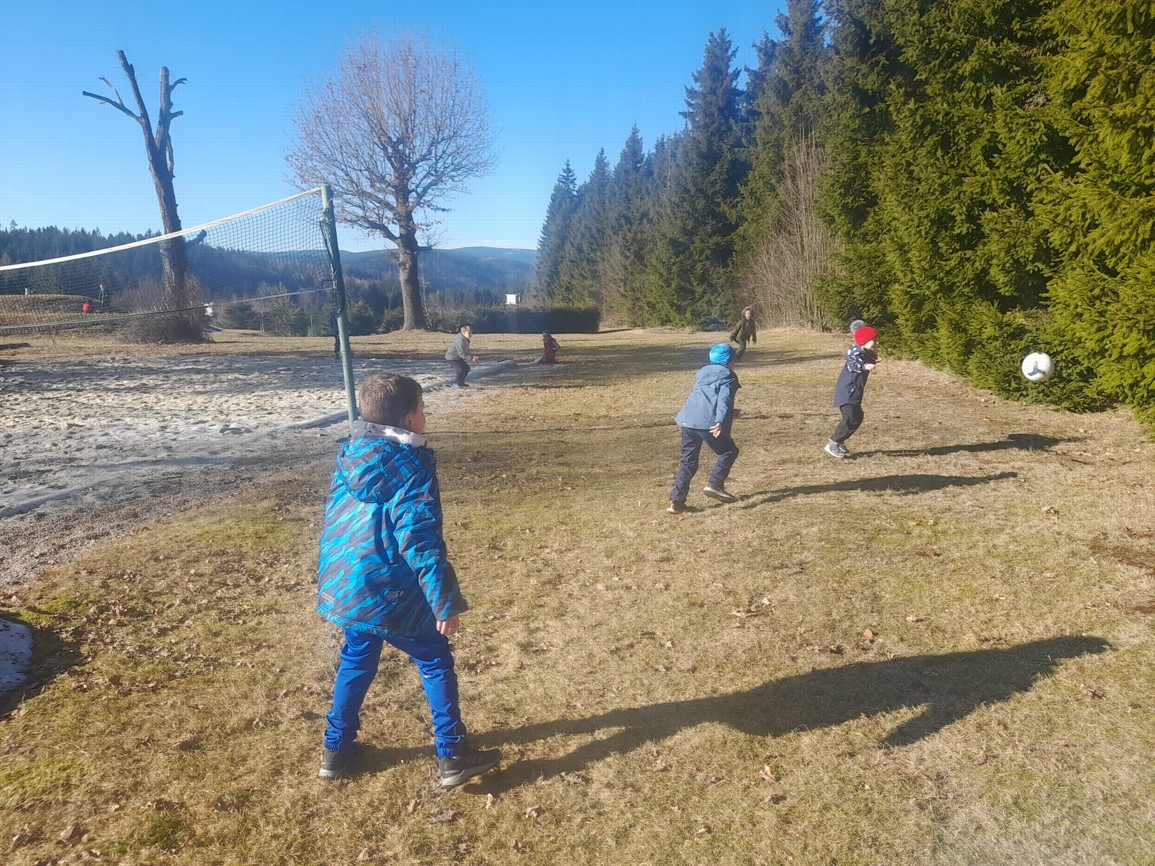 Sněhu už tu opravdu moc není a tak jsme si odpoledne užívali sluníčka a sportovních aktivit. Teď už jsou všichni v postýlkách, tak přejeme dobrou noc.
