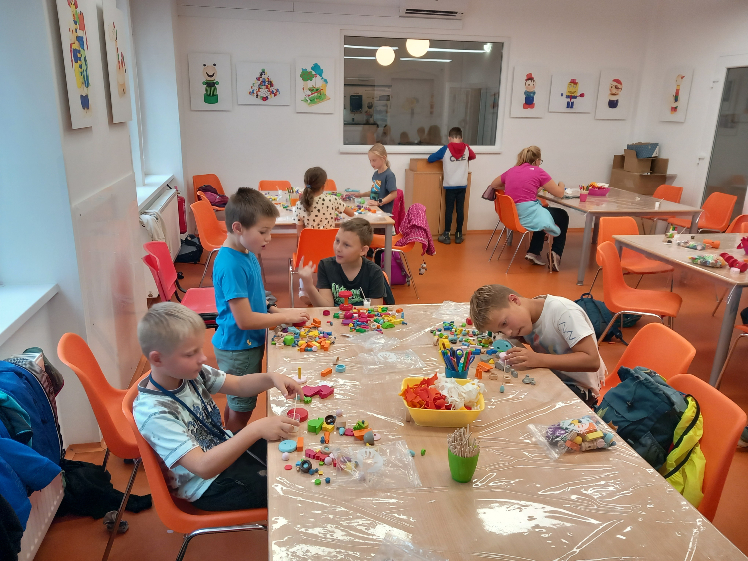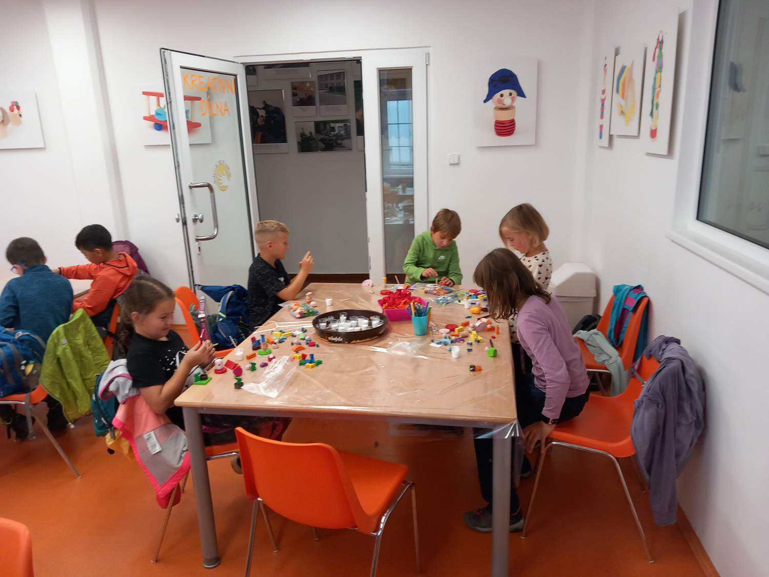 V továrně jsme se zachránili před nevlídným počasím. Viděli jsme průběh výroby dřevěné hračky a mnoho různých strojů, které je pomáhají vyrábět. Prohlédli jsme si všechny hry a hračky, které se zde vyráběli a vyrábí a mohli jsme si s nimi také pohrát. V kreativní dílničce jsme si sami vymýšleli vlastní výrobek - hračku.