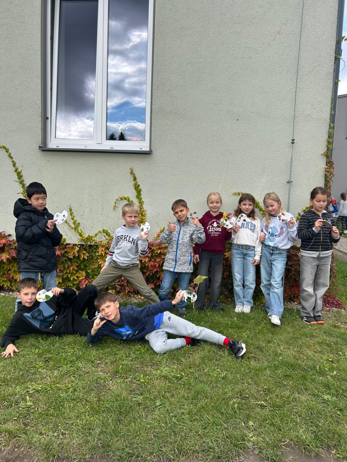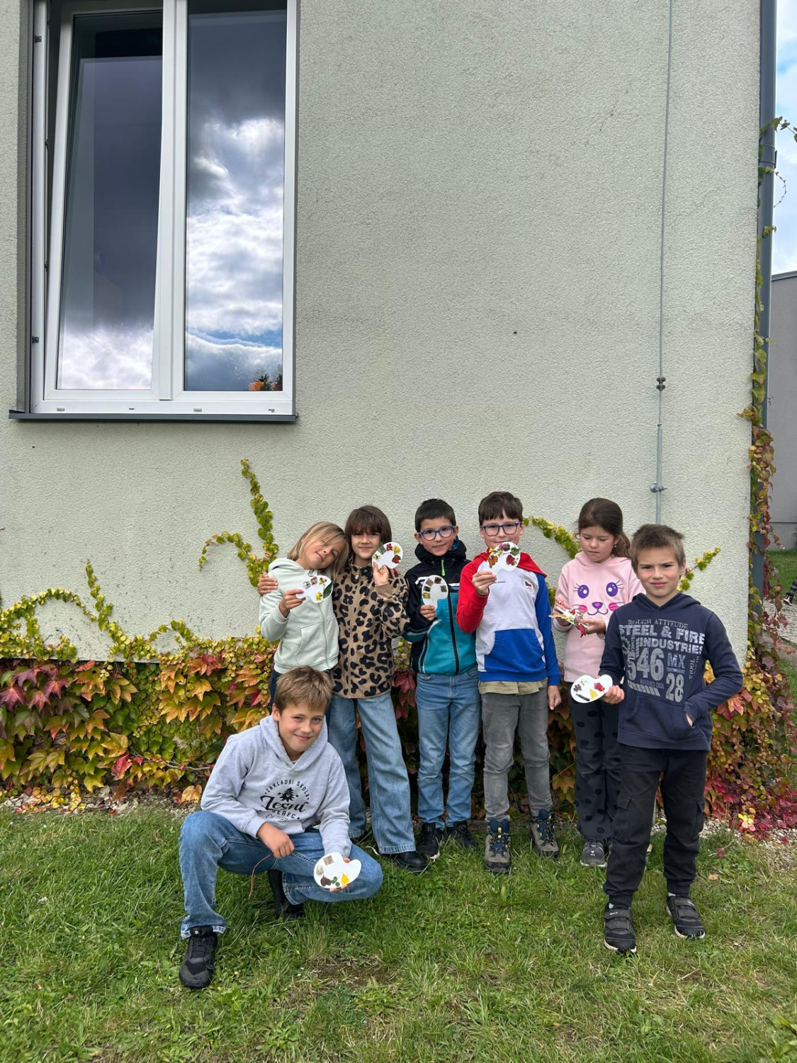 Do okolí naší školy jsme vyrazili sbírat přírodniny a tvořit z nich paletu podzimních barev. Zrovna krásně svítilo a hřálo slunce a my jsme při pozorování a hledání zahlédli také čtyři motýly. Určitě to byli ti naši. Měli jsme velkou radost. Bohužel vyletěli velmi vysoko, až nad druhé patro školy a nebylo možné je vyfotografovat. Podívejte se, jaké krásné paletky jsme vytvořili.