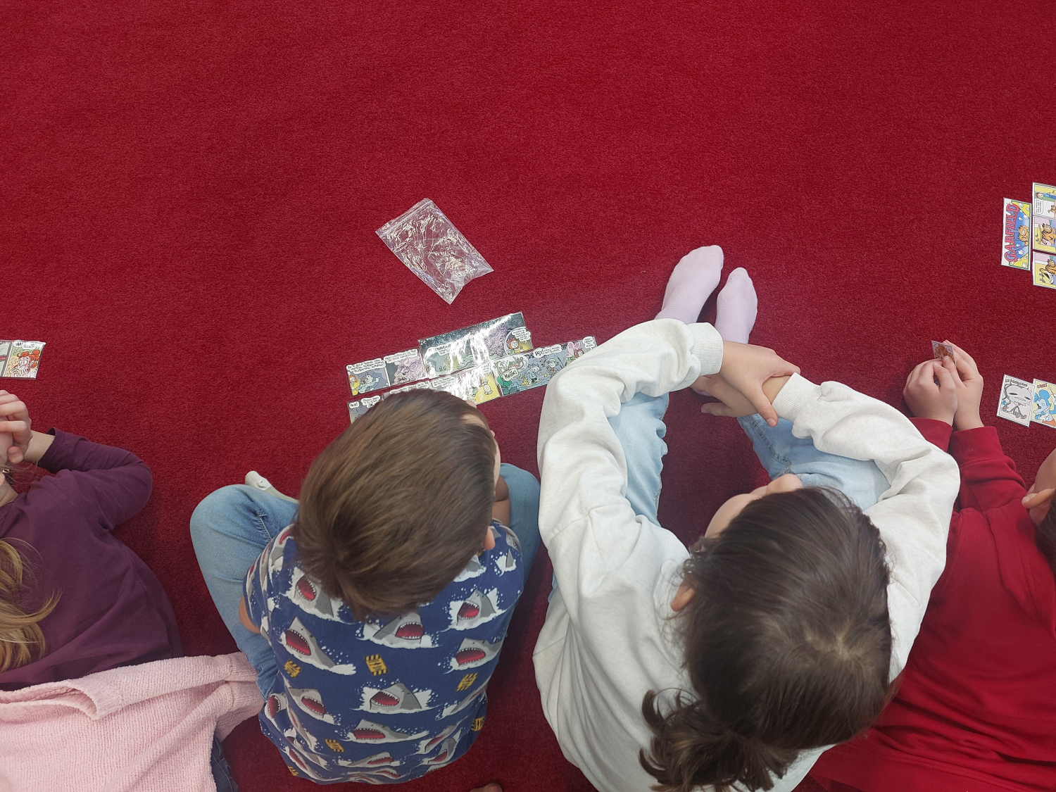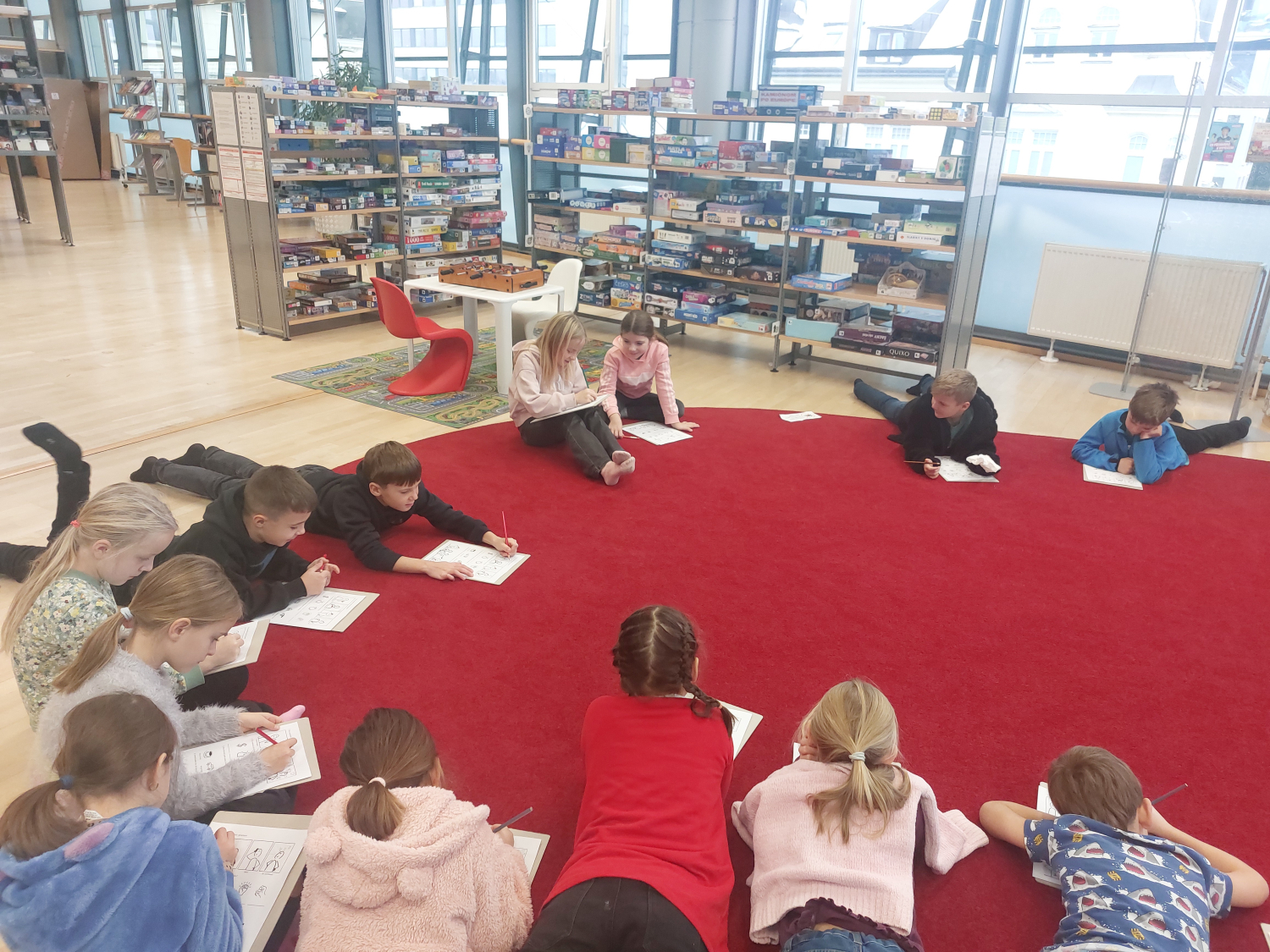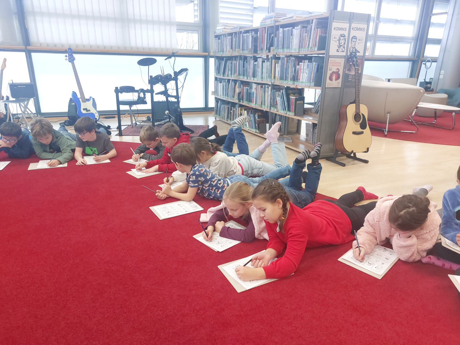 Při programu v kreativním oddělení knihovny jsme se seznámili s prvními komiksy, kterými byly jeskynní malby. Ve dvojici jsme řadili příběhy dalších světově známých komiksů. Dozvěděli jsme se také o stylu manga, který řadí obrázky a čte se zprava doleva. Pantomimou jsme předváděli pocity, které mohou postavy na obrázcích vyjadřovat a pak jsme si je také kreslili. Na konec si děti pohrály v prostorách kreativního oddělení, který je opravdu hodně krásný a kreativní. Velmi nás to vše bavilo.