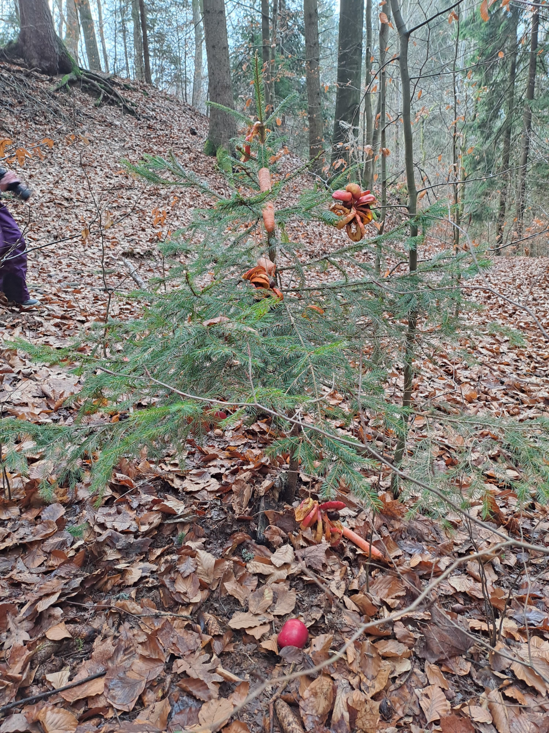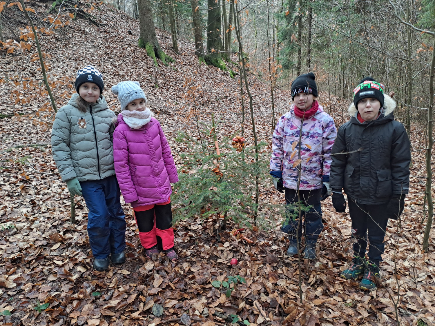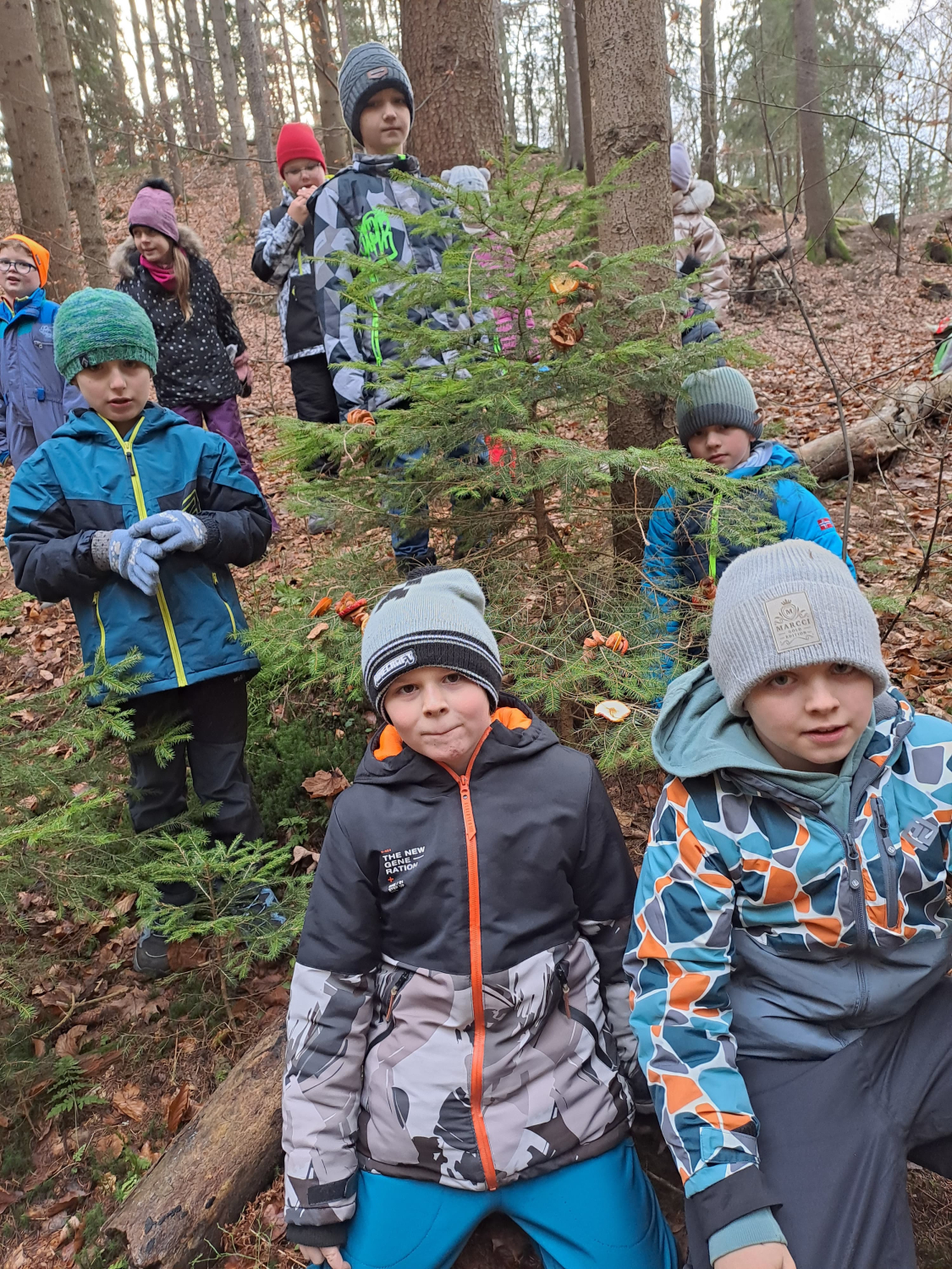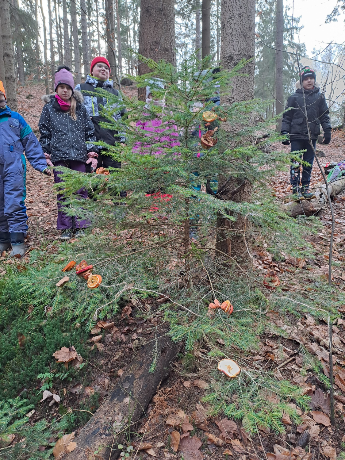Kromě pravidelného pozorování zvířat, rostlin a počasí jsme se během prosincové výpravy věnovali životu zvířat v zimě. Už dobře víme, kdo zimu prospí, kdo si připravuje na zimu zásoby a kdo si se sháněním potravy poradí i v zimě. Protože je prosinec štědrý měsíc, nachystali jsme nadílku i pro lesní zvířátka. Tak ať jim chutná!