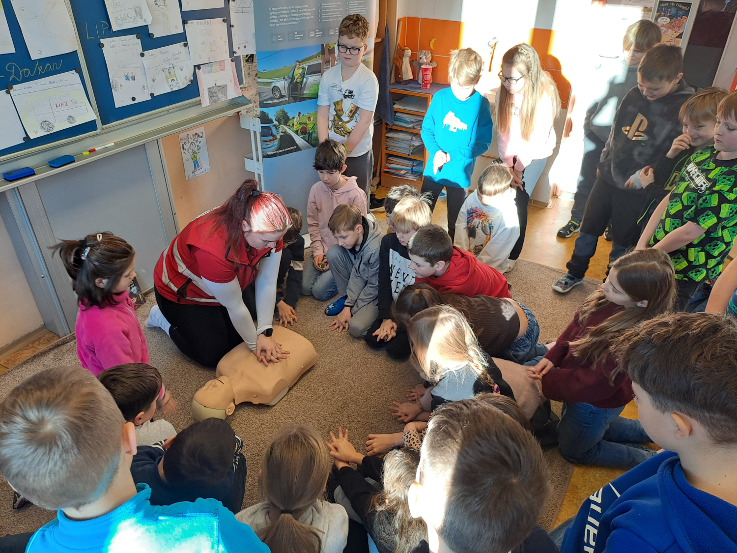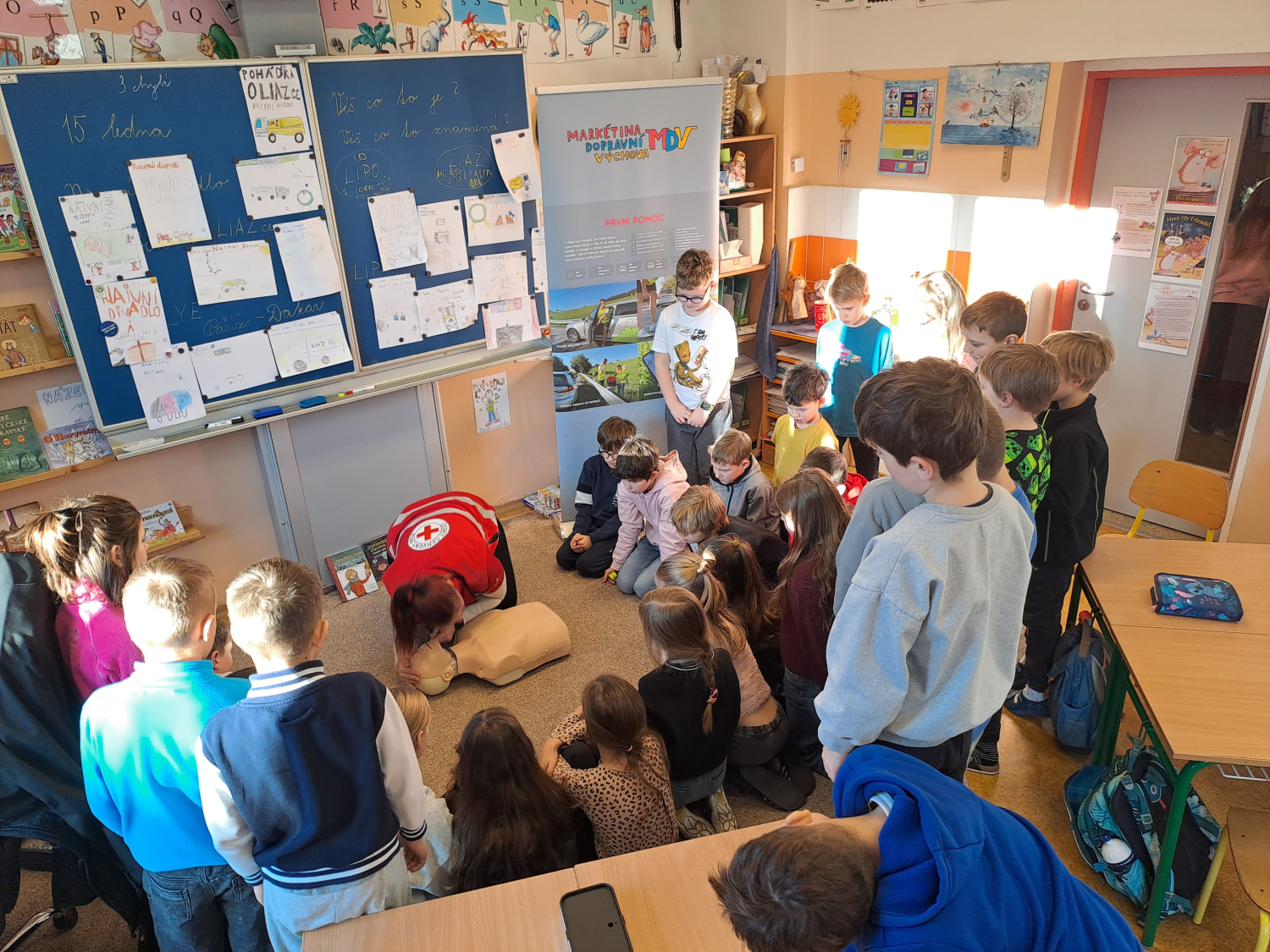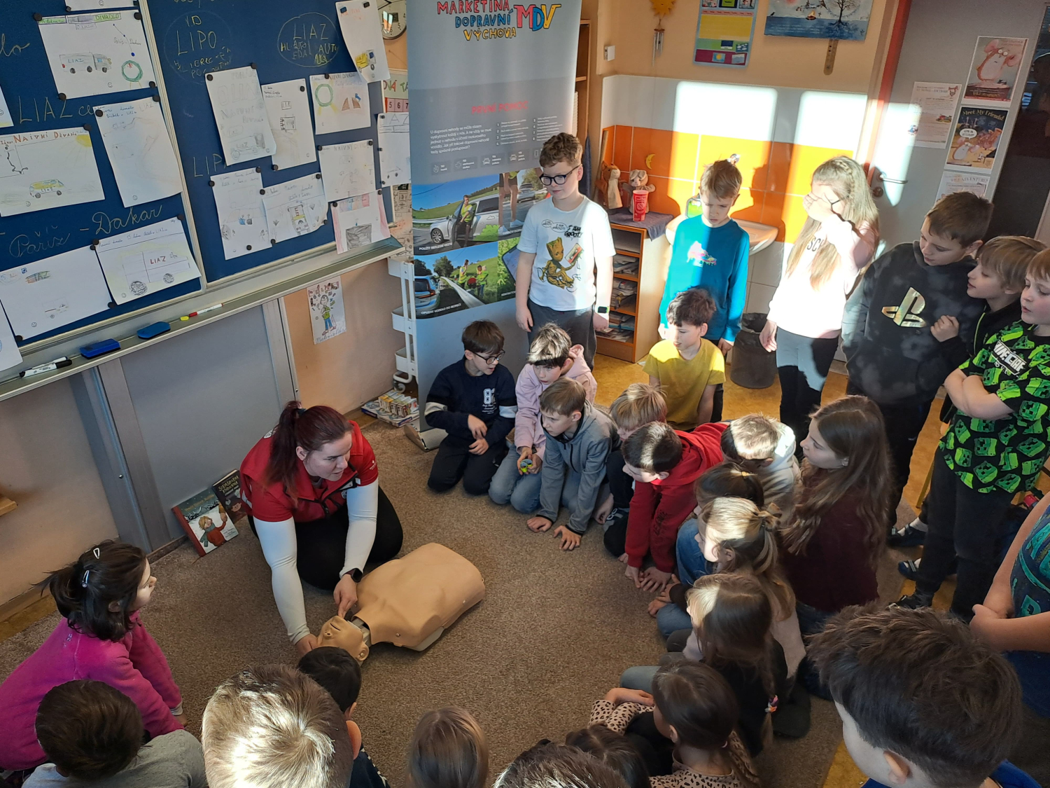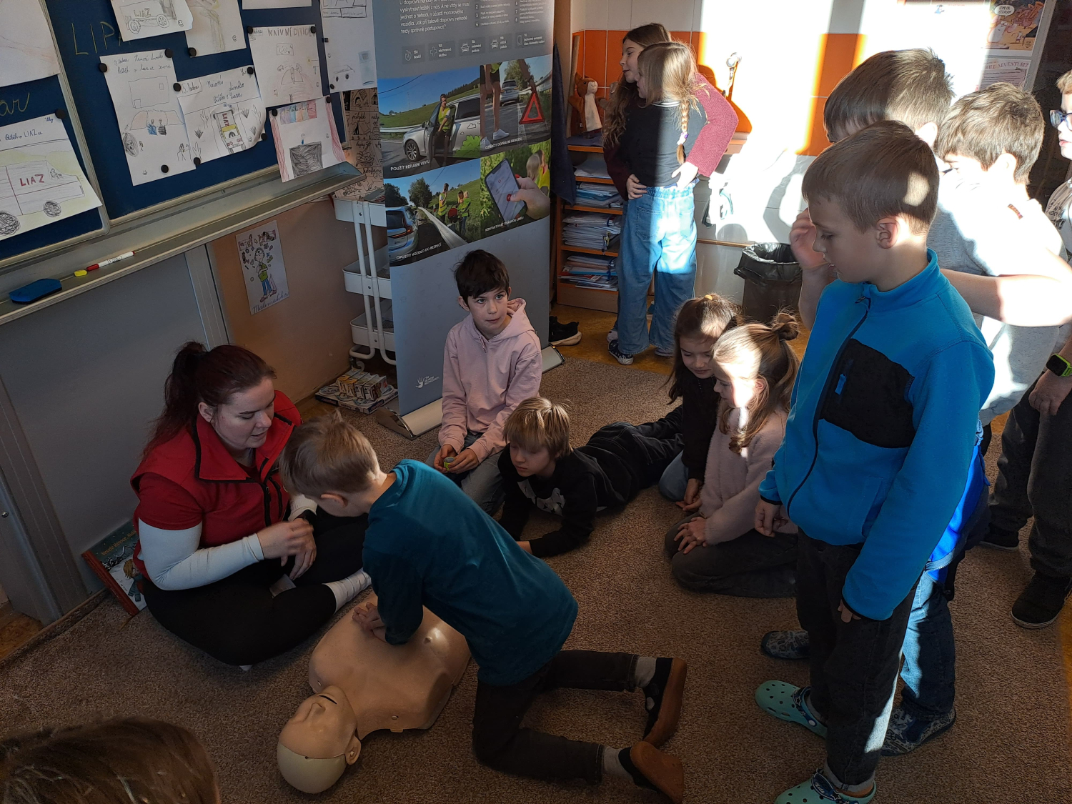 Celé pondělní dopoledne jsme se na čtyřech stanovištích v rámci projektu "Den s dopravní výchovou" seznámili s bezpečností chodce, cyklisty i pasažéra ve vozidle. Zároveň jsme si připomněli i základy první pomoci.