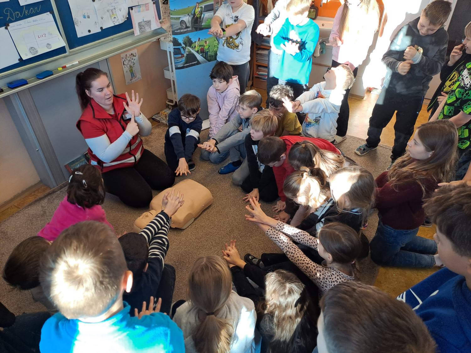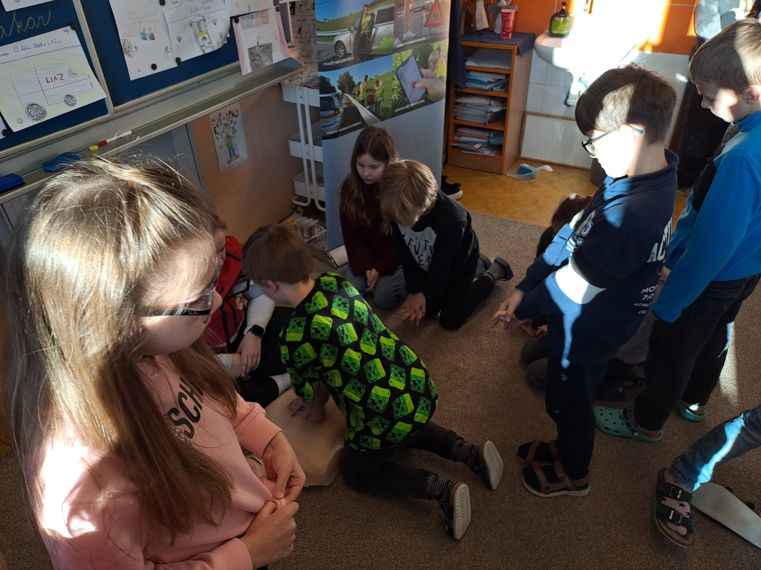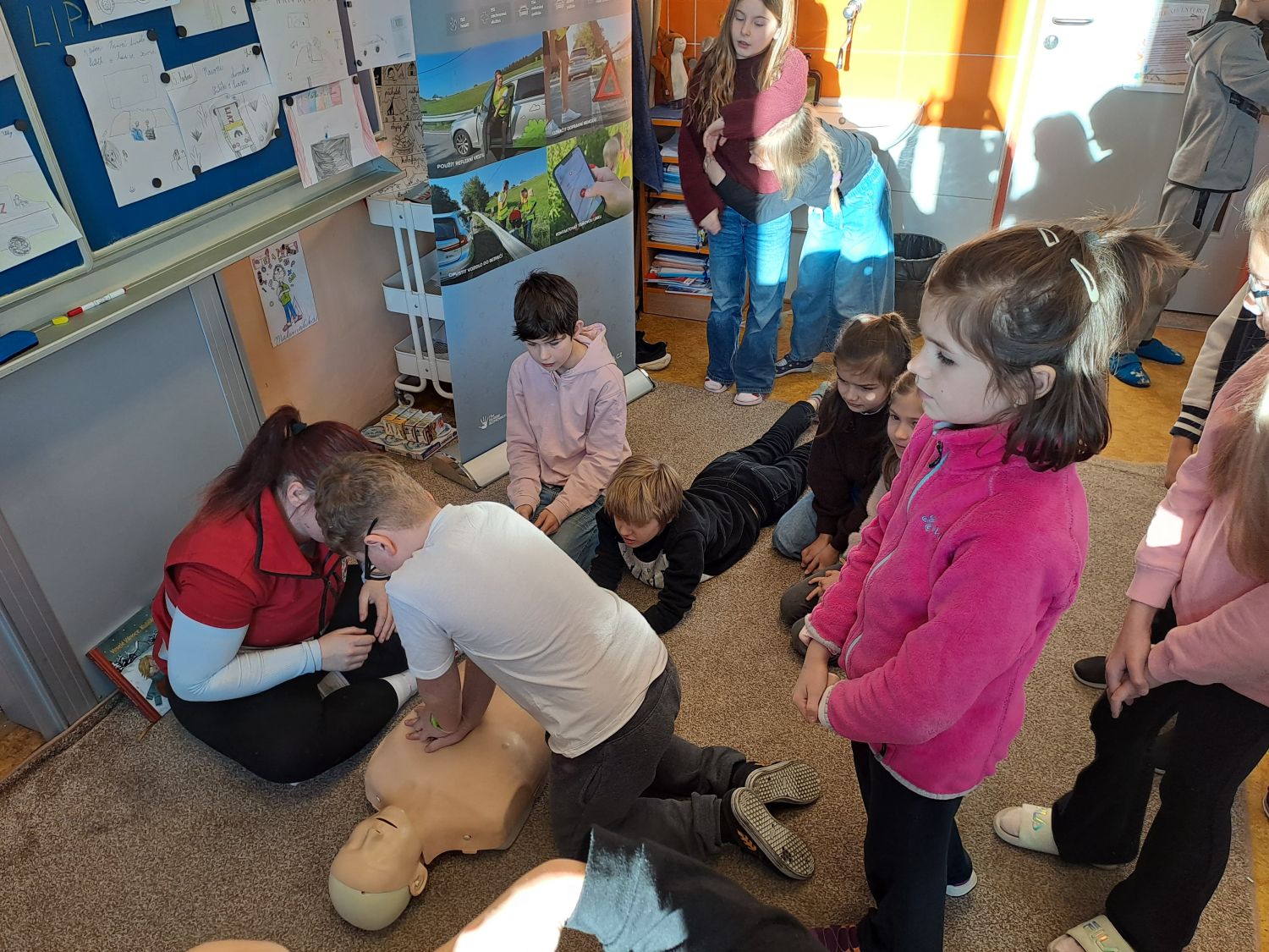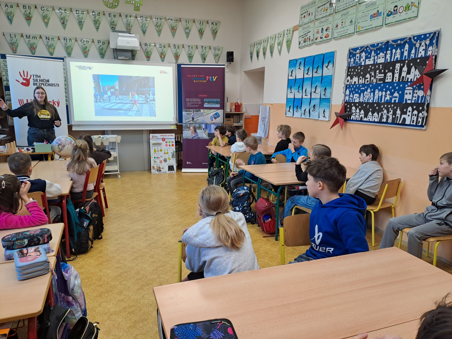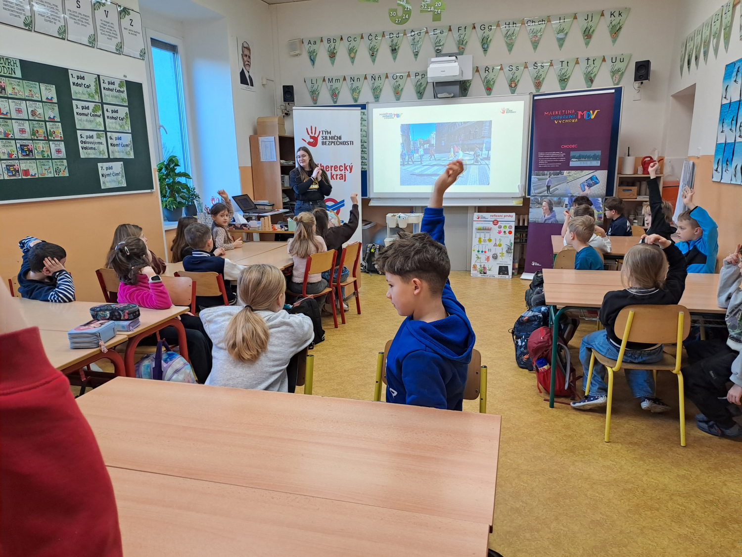 Celé pondělní dopoledne jsme se na čtyřech stanovištích v rámci projektu "Den s dopravní výchovou" seznámili s bezpečností chodce, cyklisty i pasažéra ve vozidle. Zároveň jsme si připomněli i základy první pomoci.