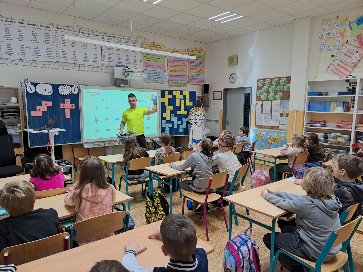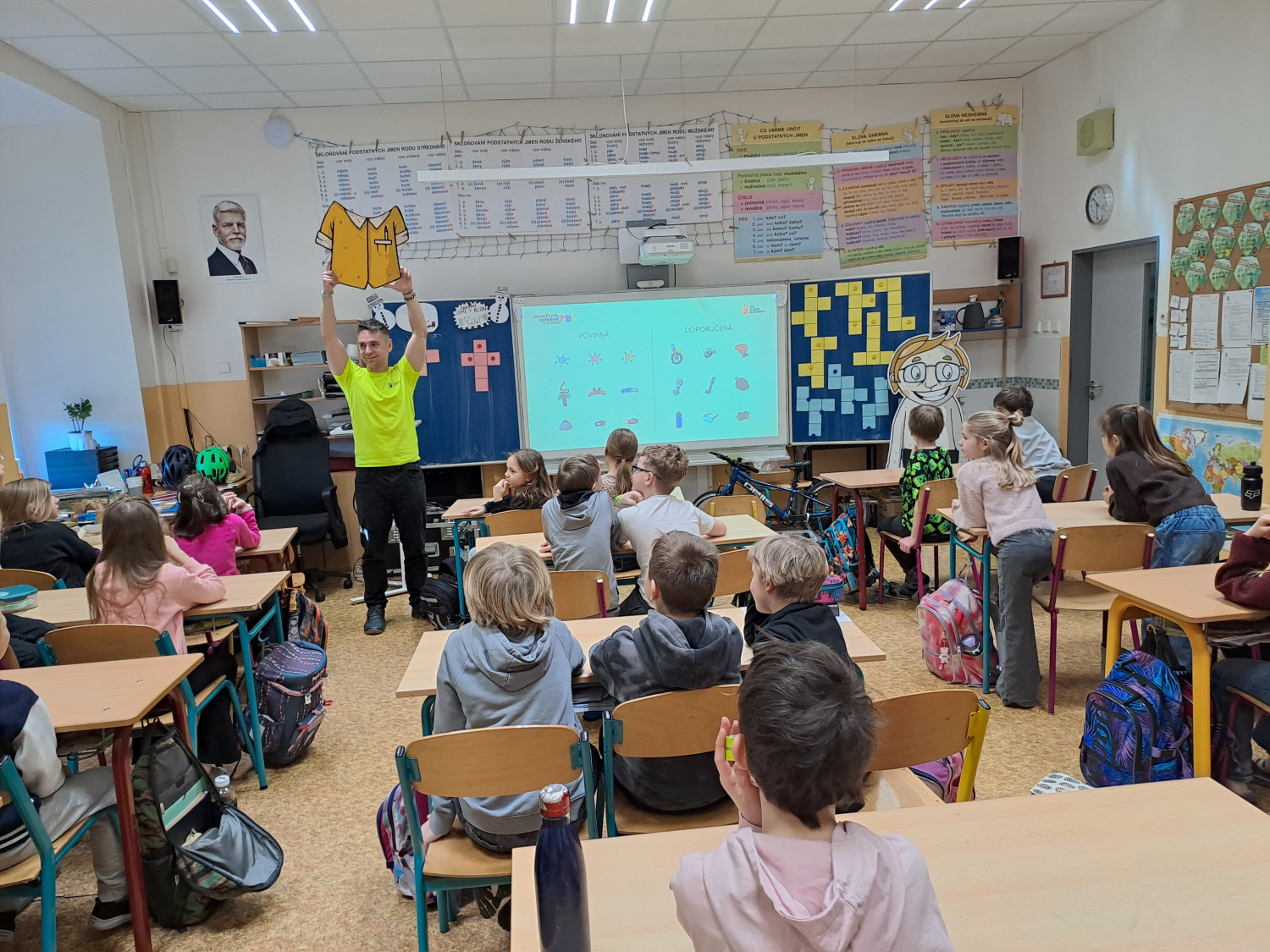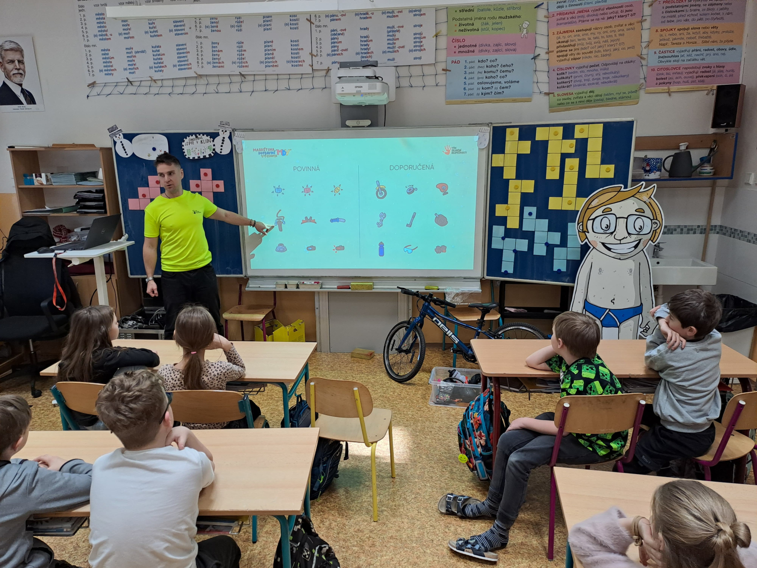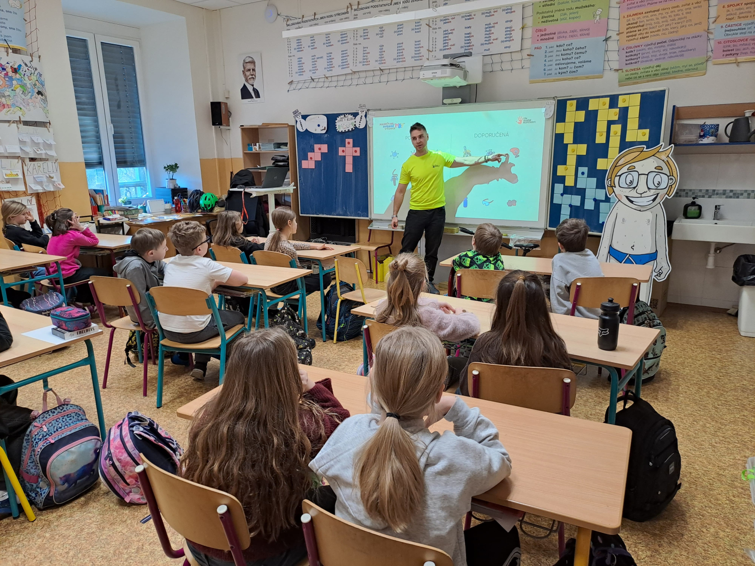 Celé pondělní dopoledne jsme se na čtyřech stanovištích v rámci projektu "Den s dopravní výchovou" seznámili s bezpečností chodce, cyklisty i pasažéra ve vozidle. Zároveň jsme si připomněli i základy první pomoci.