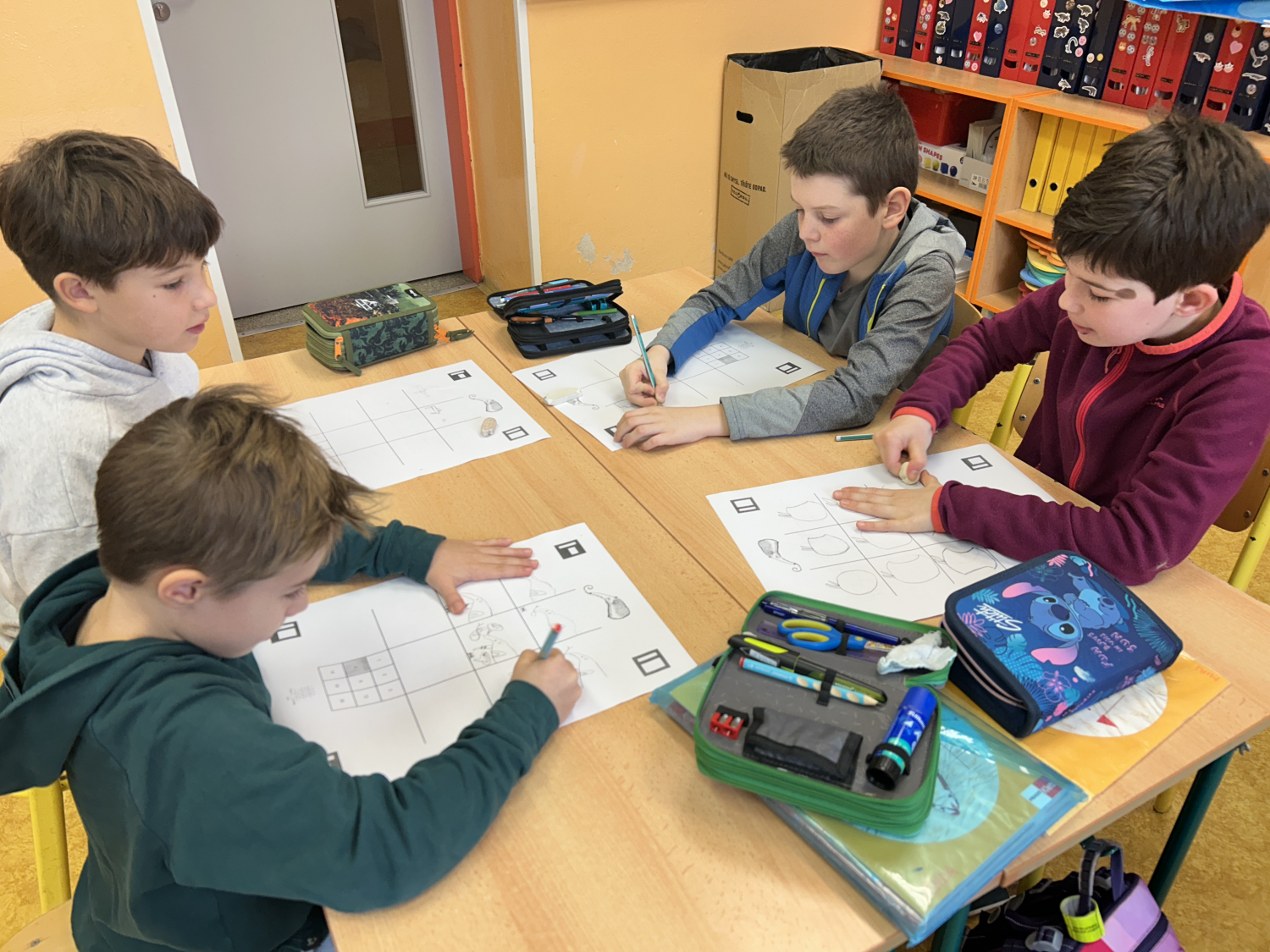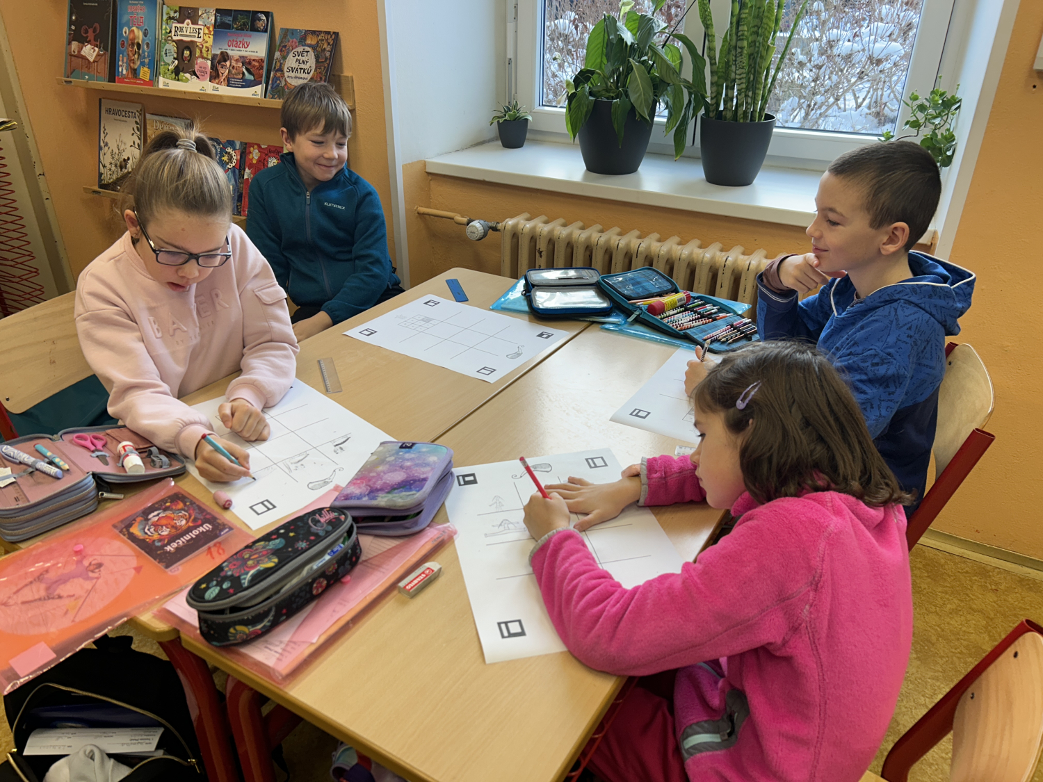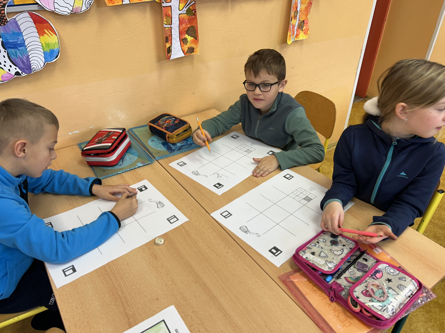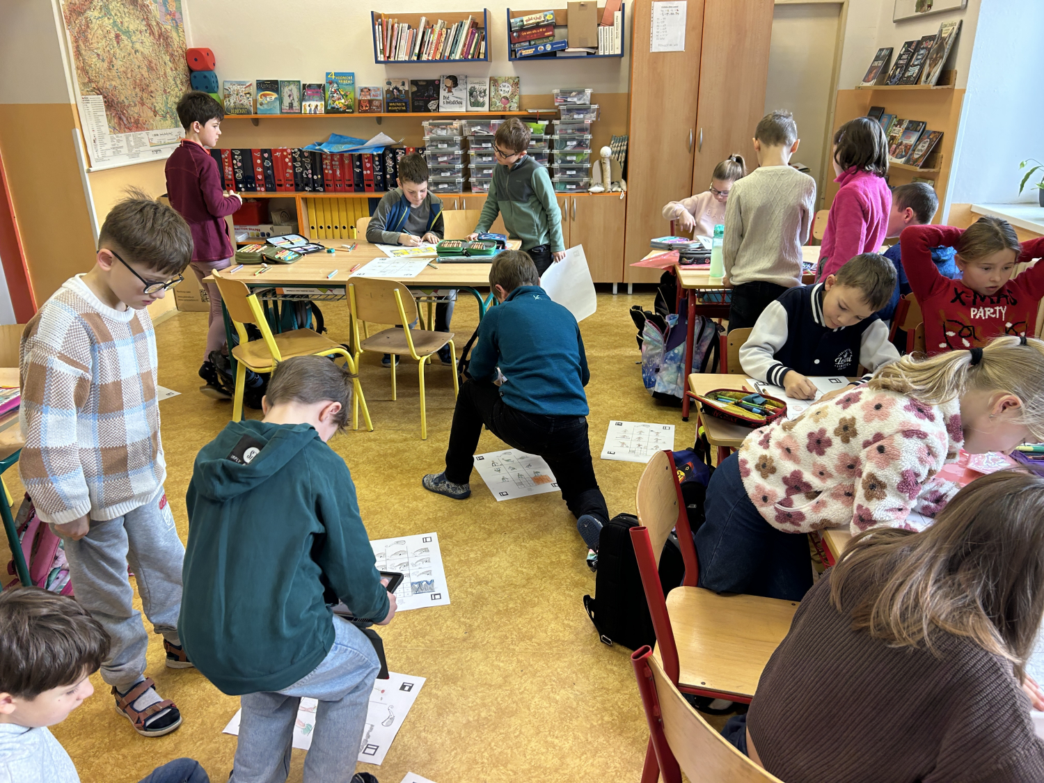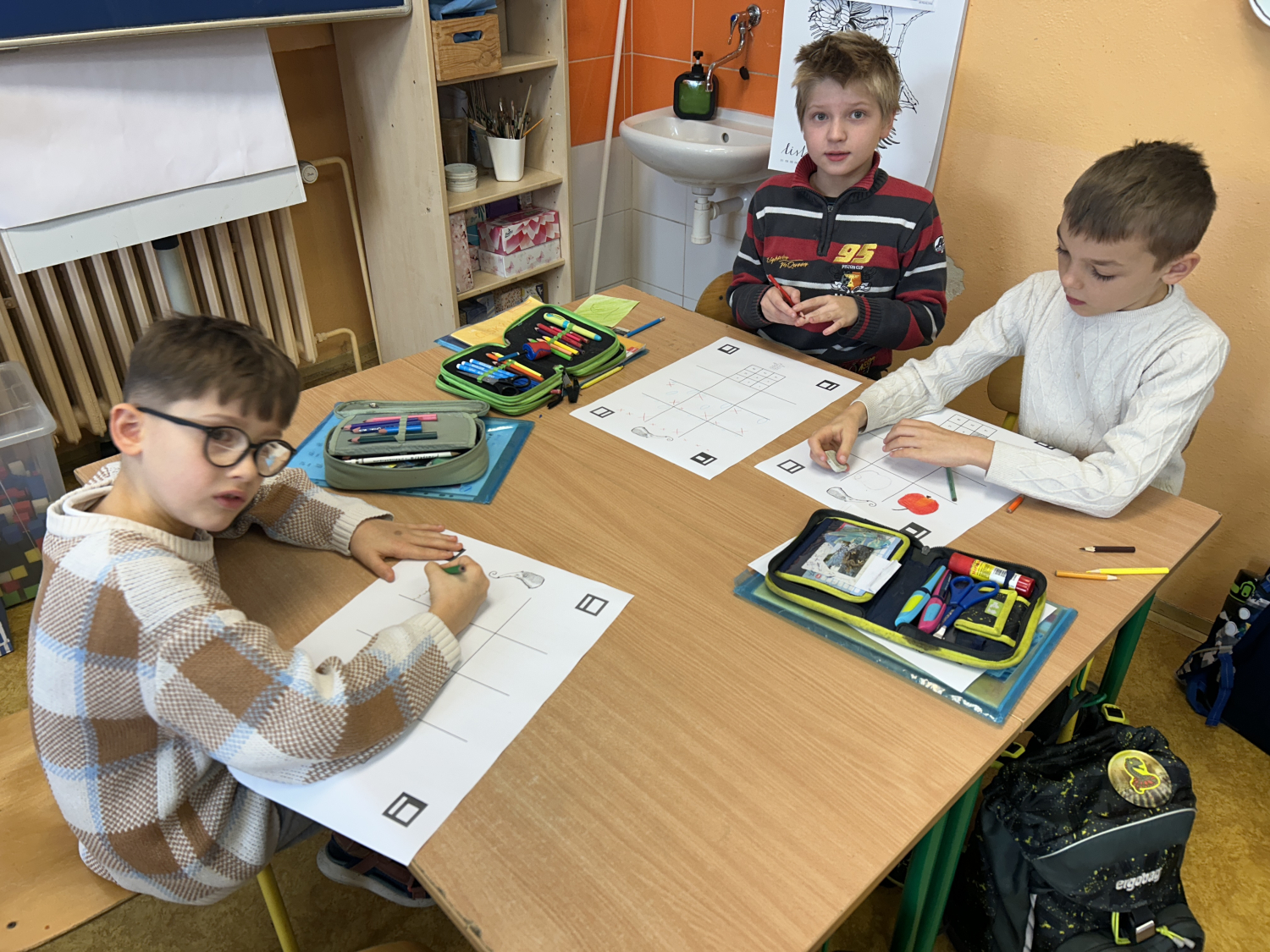 Tentokrát jsme se s dětmi seznámili s možnostmi digitální tvorby a animace. Nejprve děti namalovaly devět různých obrázků, které následně pomocí tabletů proměnily v jednoduchý pohyblivý obrázek – gif. Prostřednictvím naskenování QR kódu s odkazem na webovou stránku své obrázky nahrály a „rozpohybovaly“. Zároveň si prakticky vyzkoušely práci se školním e-mailem: přihlášení do účtu a odeslání hotového obrázku mamince.