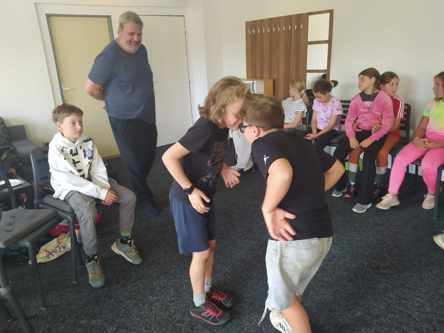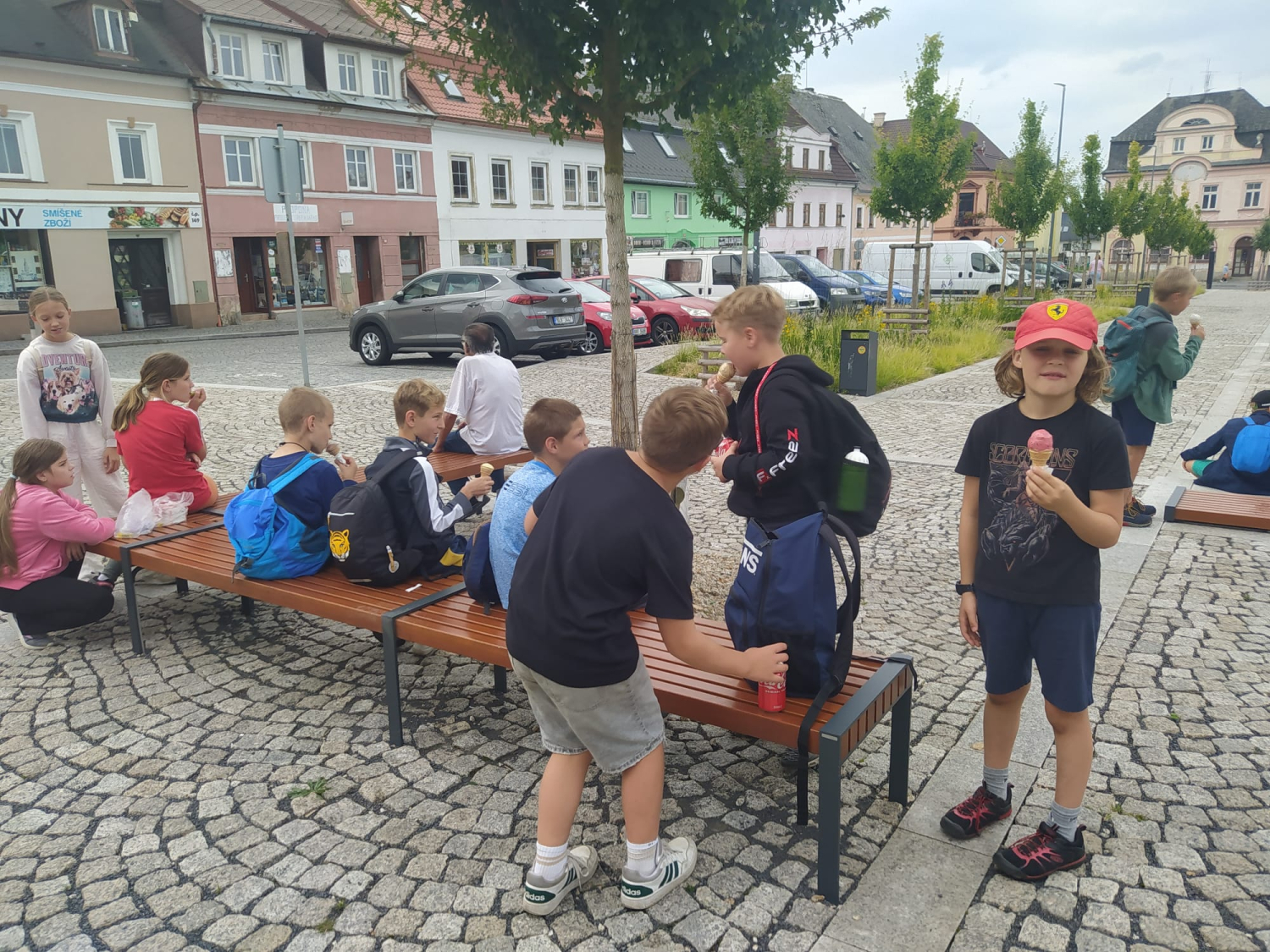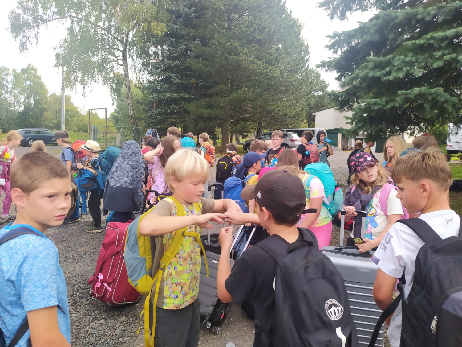 Ráno balení, úklid, snídaně.. týmové hry dopadly dobře. Nicméně všichni jsou moc rádi venku. Čekala nás poslední vycházka na náměstí, zmrzlina, oběd. každou volnou chvíli kluci stráví fotbalem. Odjezd byl komplikovaněRjší, ale všechno dobře dopadlo. Náhradní bus přijel brzy. Loučíme se s Novým městem pod Smrkem a na památku máme foto pod smrkem.