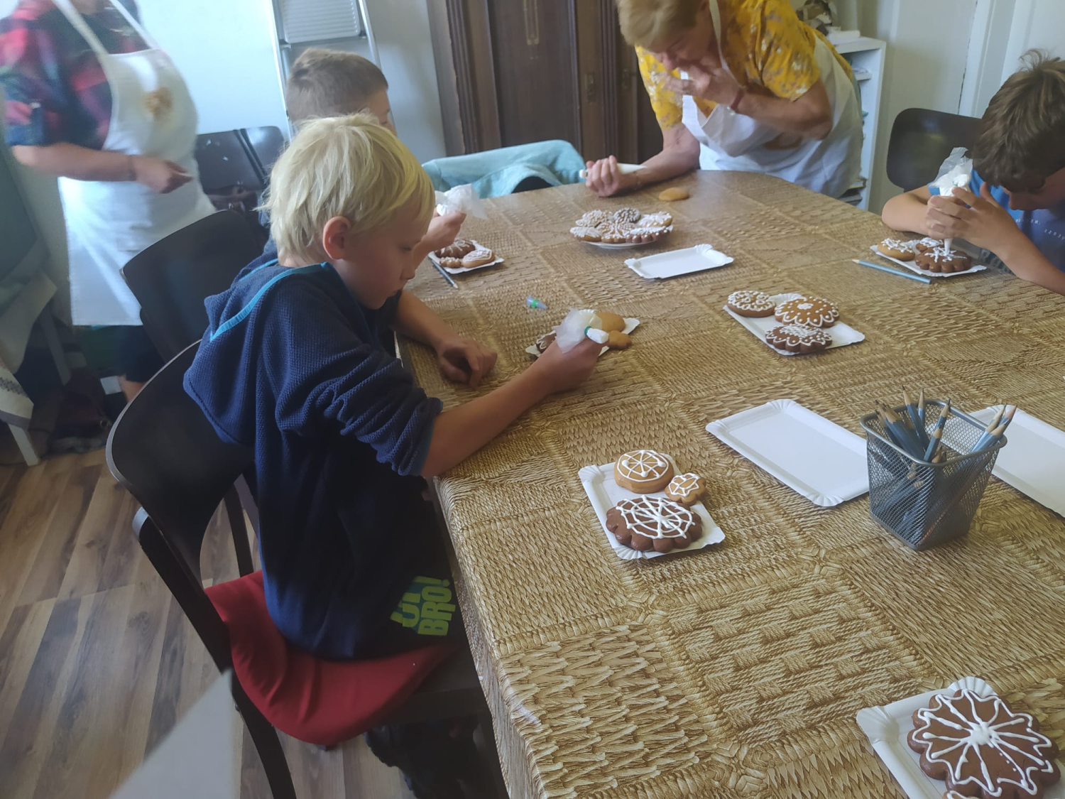 Dobrý den všem, dnešní den nabitý od rána do večera. Dopoledne jsme měli skvělé vyprávění i s ukázkami sportovních holubů. Přišel pan Jiří Svoboda -mistr světa, chovatel sportovních holubů. Poutavě vyprávěl i další chovatel-evangelický farář. Ukázal nám i desetidenní mládě holuba. Dozvěděli jsme se, jak vlastně funguje poštovní holub a jeho předávání zpráv, kolik doletí, jak to celé vzniklo. Další povídání bylo o chovu včel od paní Ivety Svobodové. Vše probíhalo ve velmi malebném prostředí. Po obědě hraní venku-volejbal, pískoviště. Vycházka na Kyselku, Smrk zdoláme někdy příště. V lese byly připraveny hry, hlavně na paměť a spolupráci. Po setmění začalo lehce pršet, ale děti byly vybavené a prošly si stezku odvahy s úkoly. Už všichni spí.