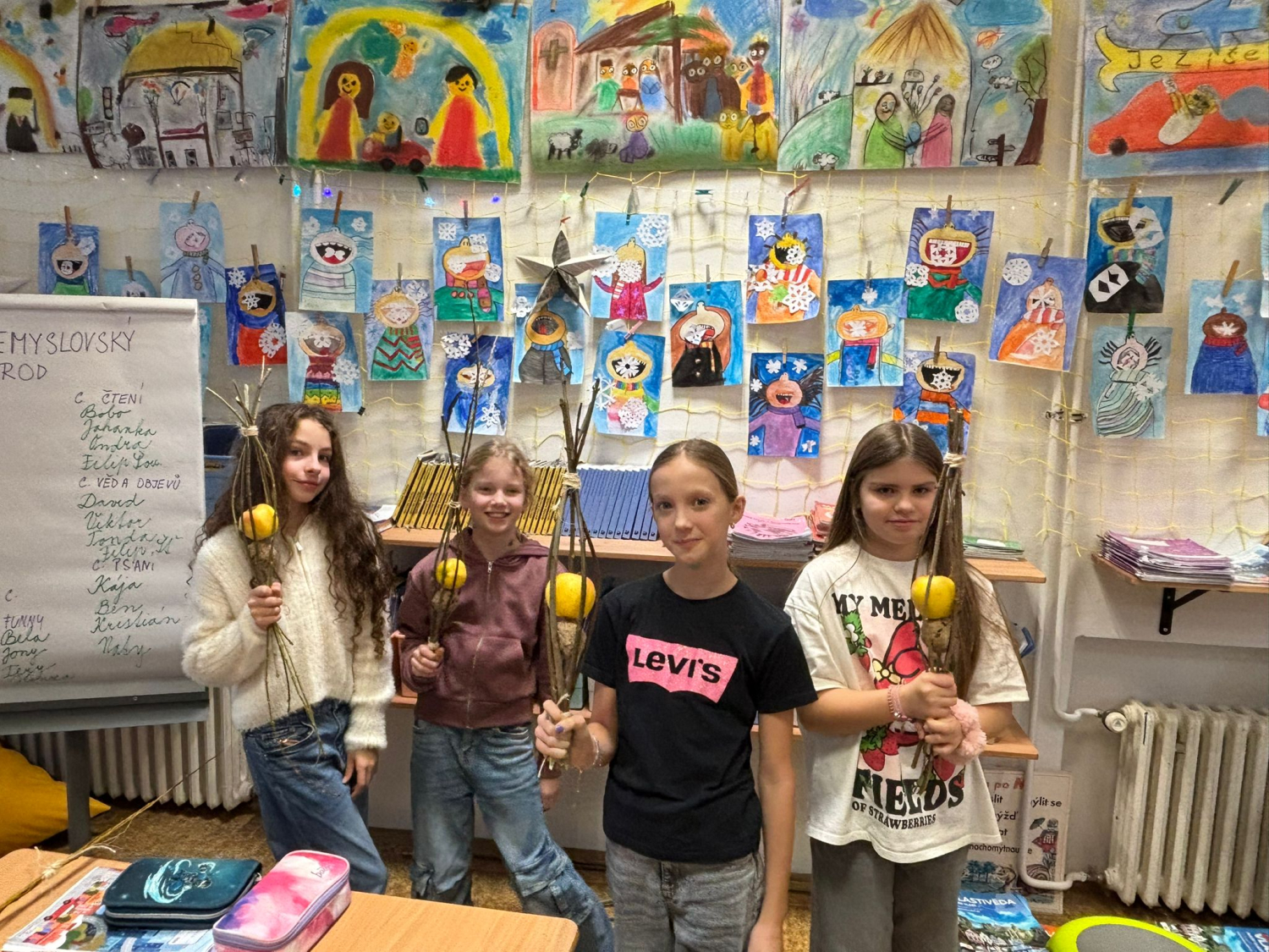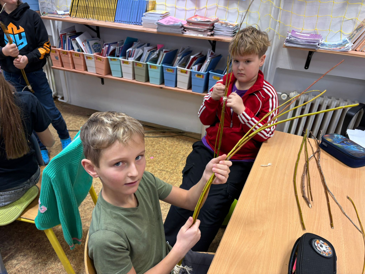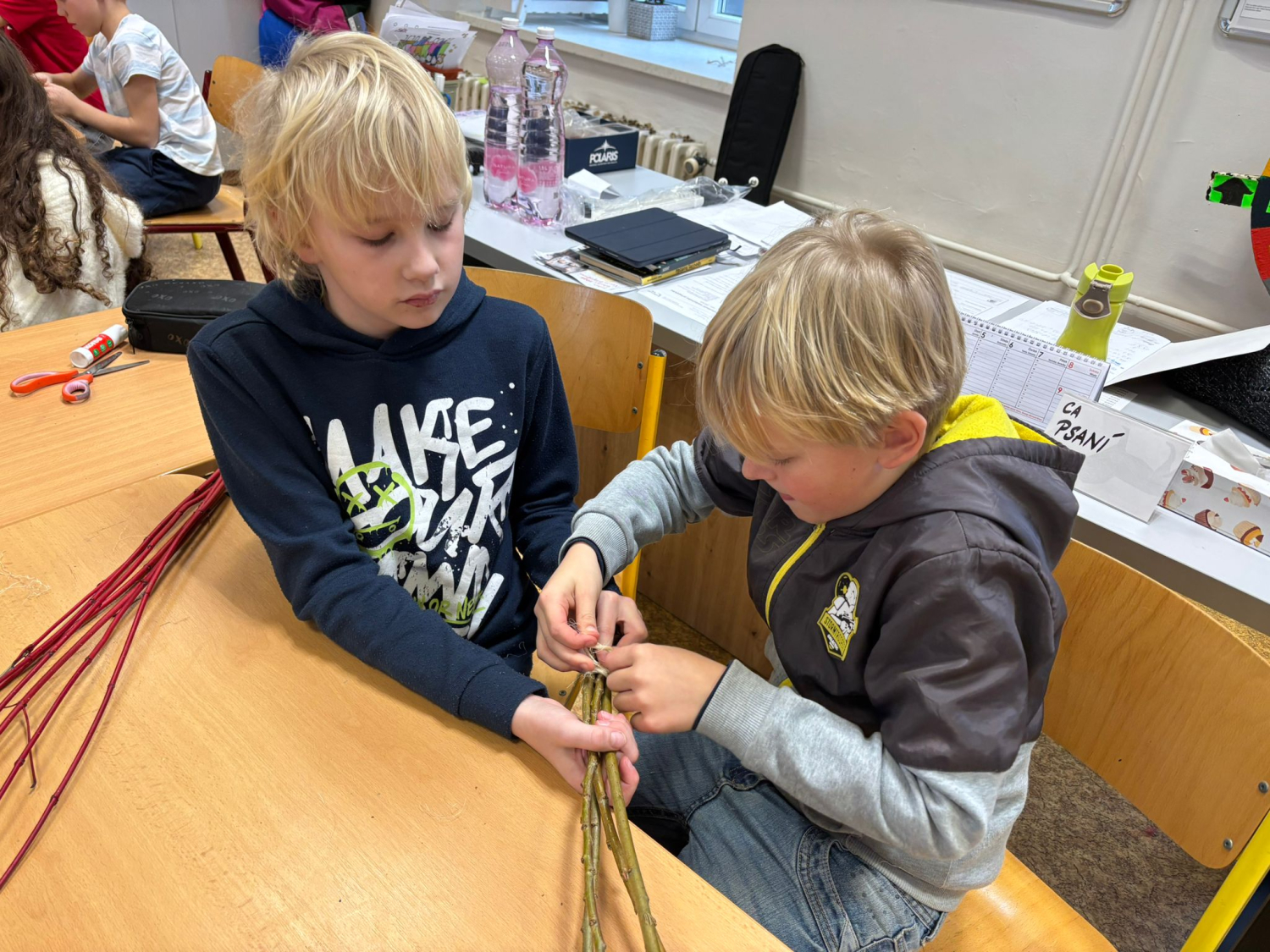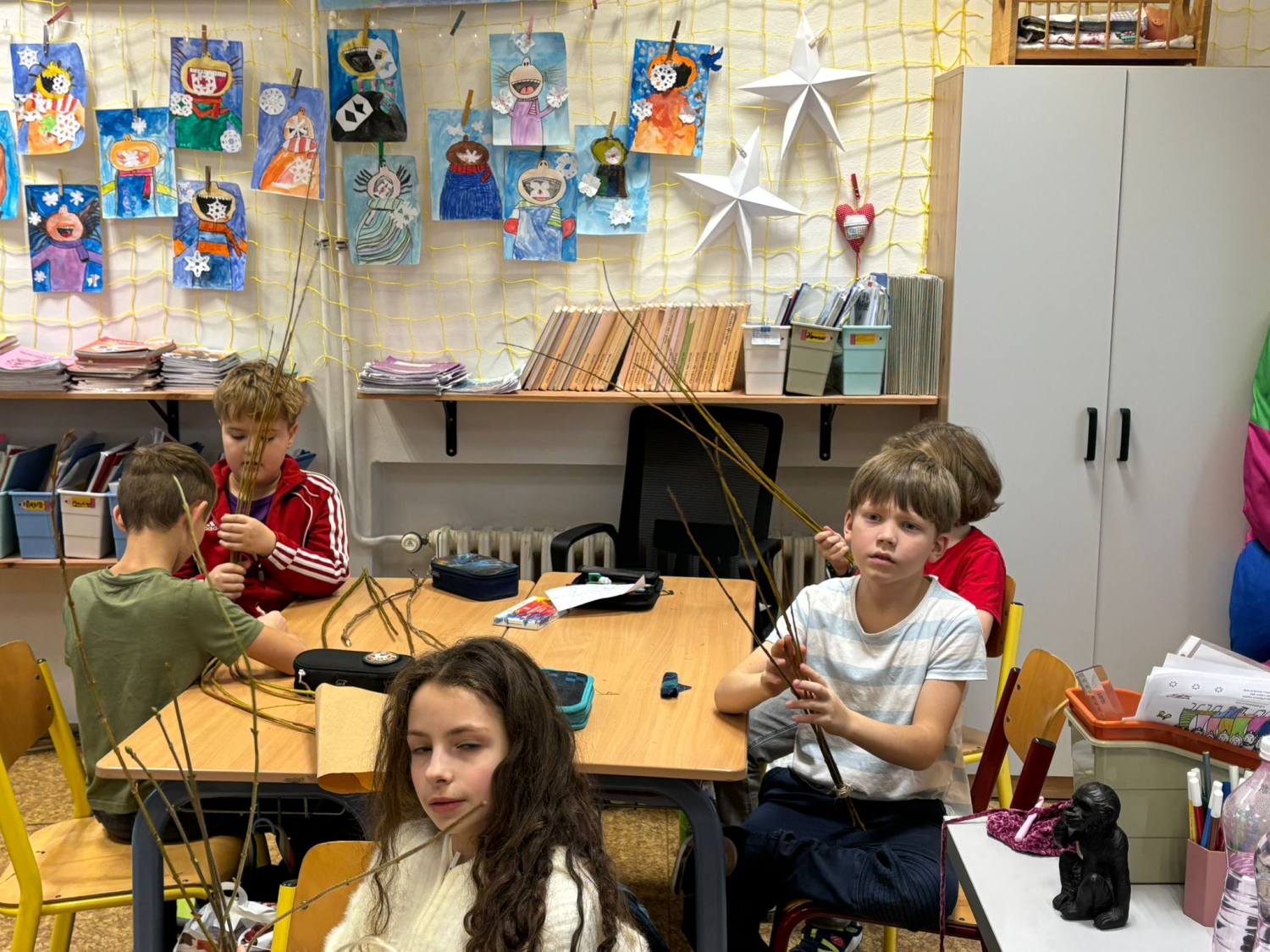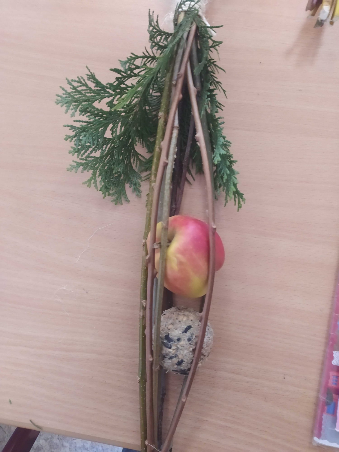 Kuba s 9. A vymyslel v rámci své ročníkové práce jednoduché krmítko pro ptáky. Do třídy přišel a každý si podle jeho návrhu krmítko vyrobil. Fungovalo. Děti pracovaly s přírodním materiálem, který si samy obstaraly.