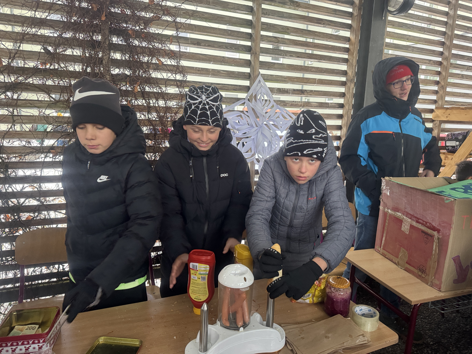 Moc děkujeme vám všem za pomoc dětem s přípravu adventních trhů. Velmi si vážím vaší aktivity a nápaditosti při tvorbě pochutin, vánočních dekorací a doplňkového sortimentu k prodeji. Většina dětí se aktivně zúčastnila na prodeji ve stánku, pomoci při focení, kole štěstí, tvorbě párků v rohlíku, úklidu a ostatních aktivitách. Také musím moc poděkovat maminkám (především paní Zítové, jako hlavní organizátorce velkého stánku) a tatínkům, kteří se aktivně podíleli na výzdobě a prodeji našeho stánku a postarali se o hladký průběh prodeje. Bylo to milé, příjemné a pevně doufám, že si vy jste si to příjemně užili.