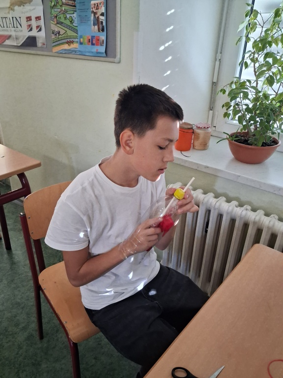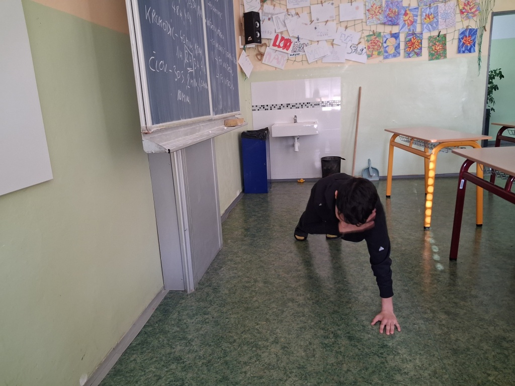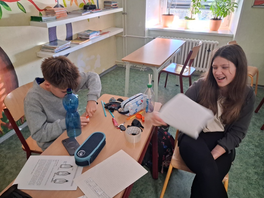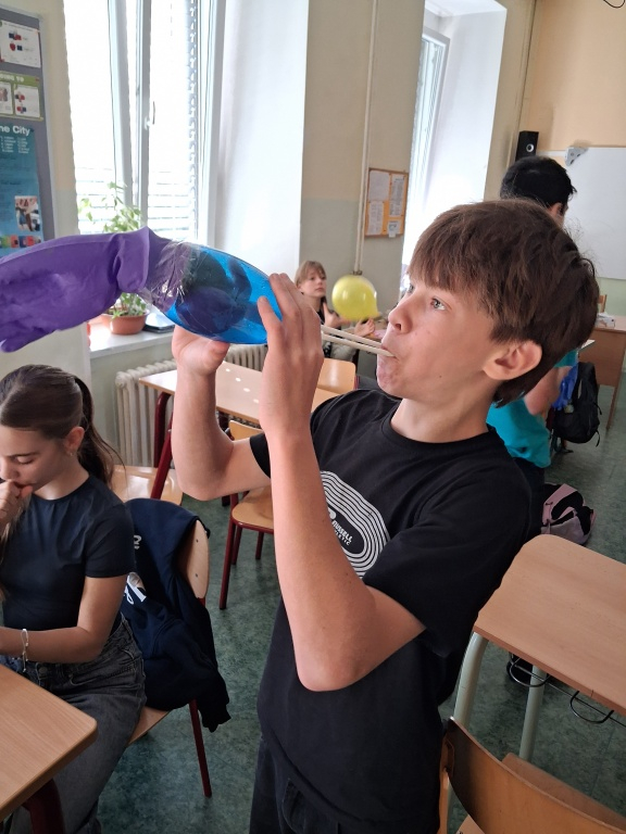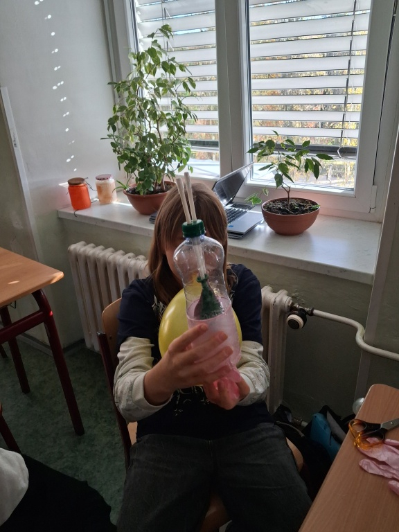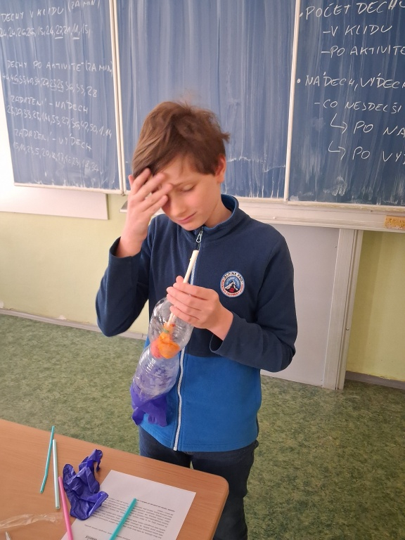 První den. Na začátku jsme si vyráběli vlastní model plic z PET láhve, balónků a brčka. Díky tomu jsme si mohli názorně ukázat, jak funguje dýchání a proč je důležitá bránice. Potom jsme mluvili o vodních savcích. Probírali jsme, jak se dokázali přizpůsobit životu ve vodě, jak dýchají a čím se živí. Zmiňovali jsme například velryby, delfíny nebo tuleně. Na konci dne jsme dělali pokus s dechem. Nejdřív jsme splnili krátký fyzický úkol a pak jsme počítali, kolikrát se během jedné minuty nadechneme. Na základě toho jsme sledovali, jak tělo reaguje po zátěži.