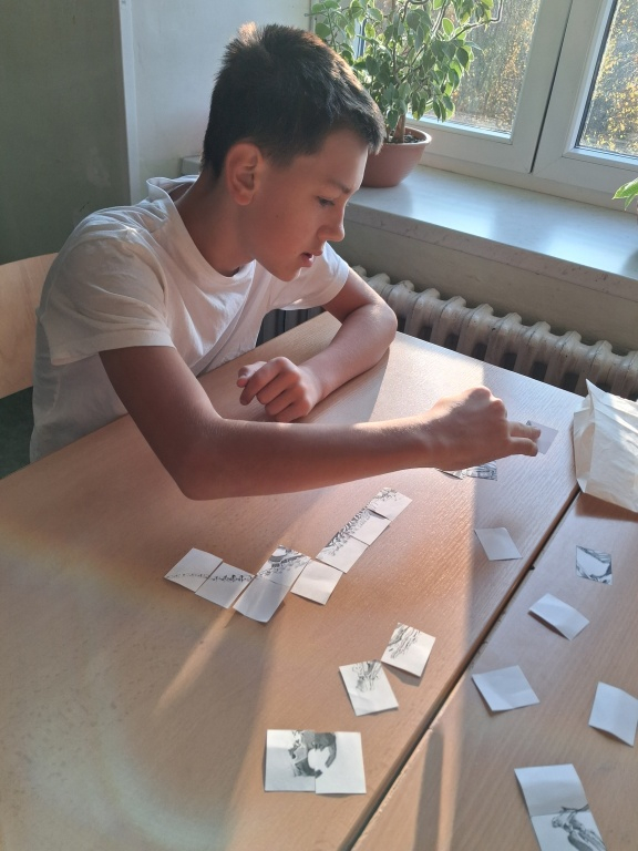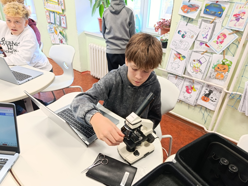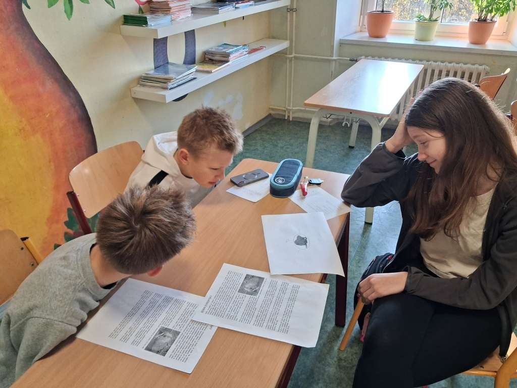 Druhý den. Druhý den byl více o pozorování. Pracovali jsme s mikroskopy a prohlíželi si různé vzorky, například listy rostlin, látky nebo naše vlasy. Zkoušeli jsme si zaostřování a správné nastavení světla. V další části jsme se zaměřili na otisky prstů. Ukázali jsme si, jaké existují typy vzorů, a pak jsme si každý sejmul vlastní otisk pomocí tuhy a lepící pásky. Porovnávali jsme mezi sebou rozdíly a povídali si o tom, proč má každý člověk jedinečný otisk.